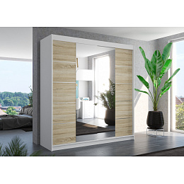 Tolóajtós szekrény tükörrel DALMATIA 200 Fehér+Sonoma