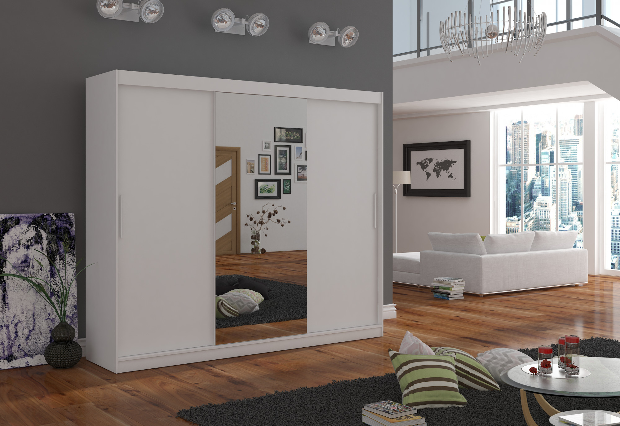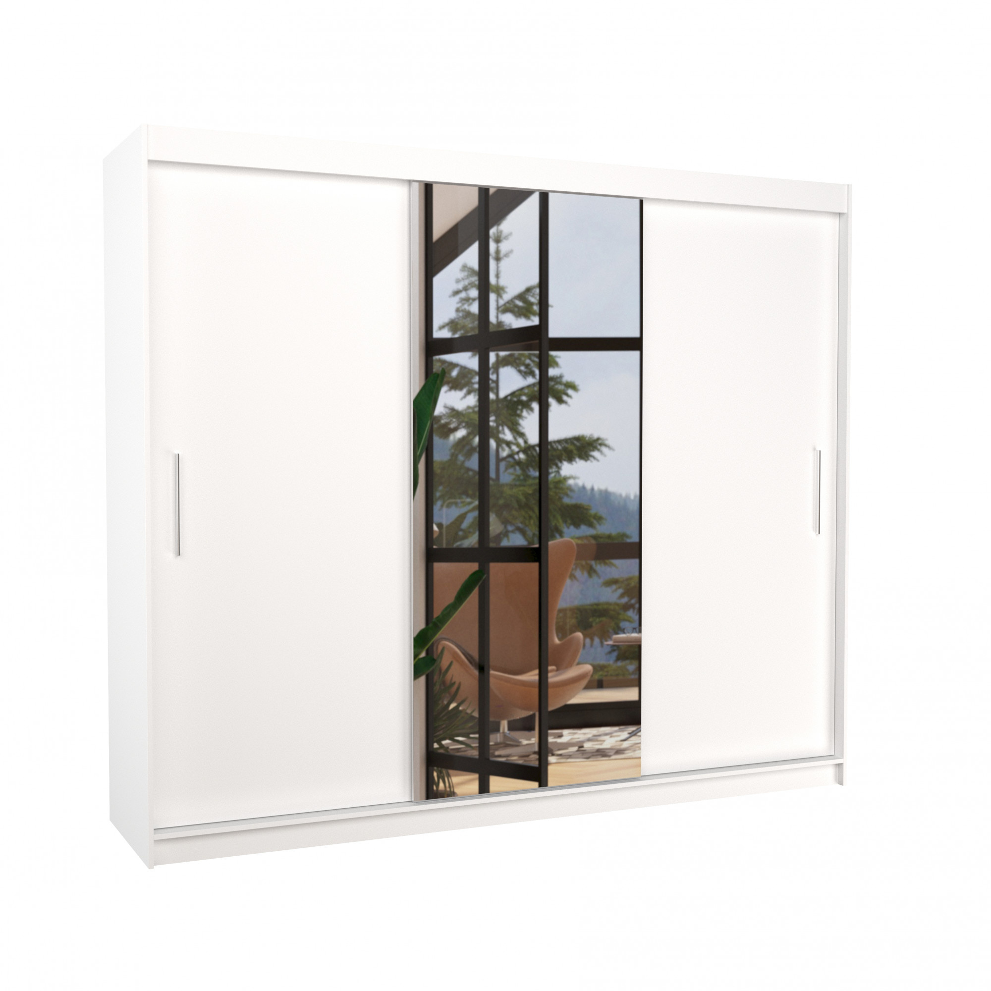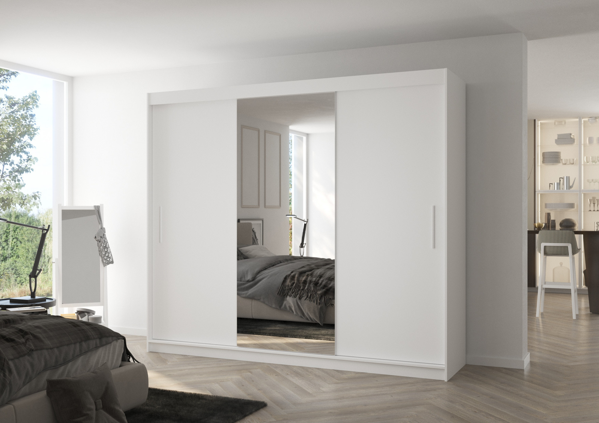 Tolóajtós szekrény tükörrel DENIS 250 Fehér+Fehér