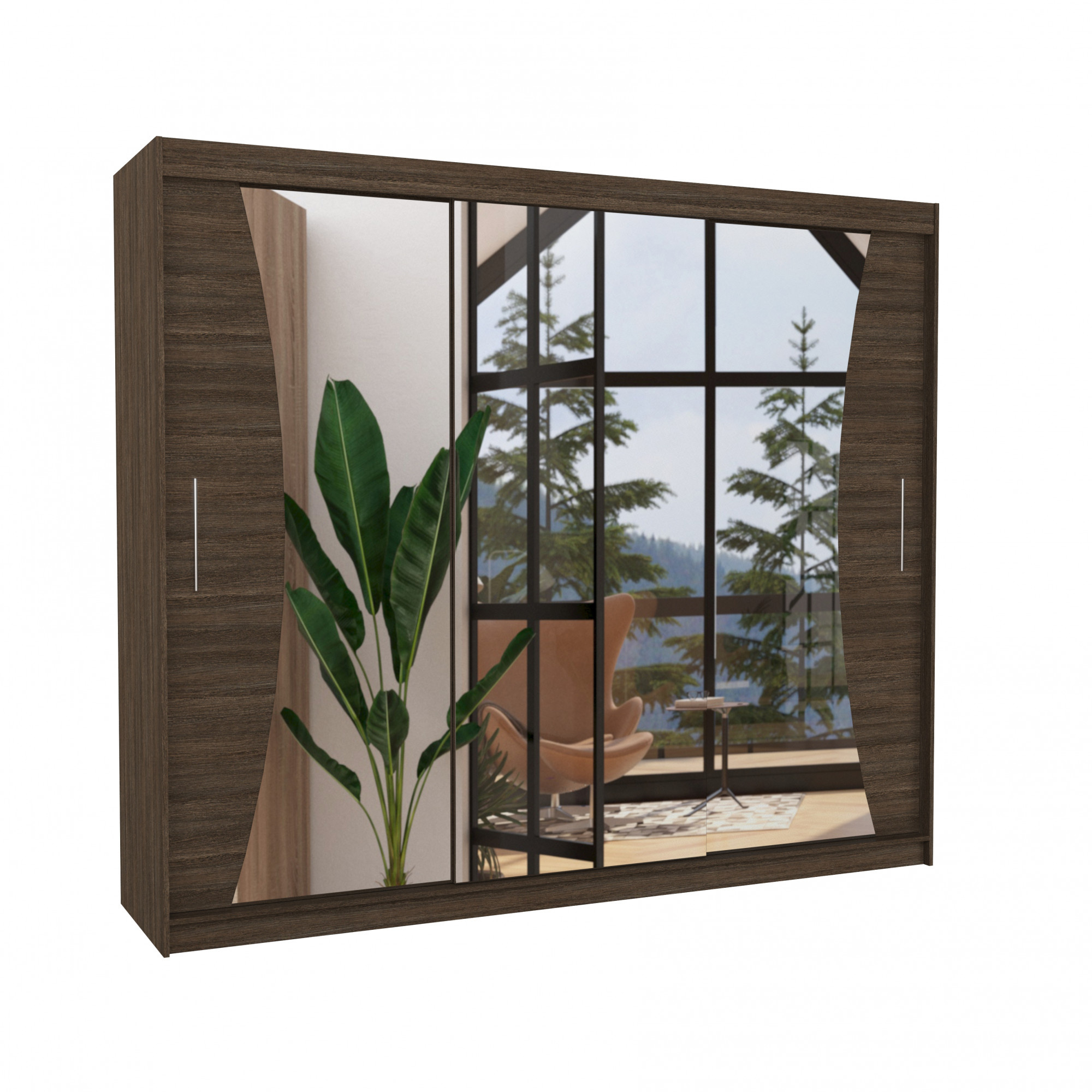 Tolóajtós szekrény tükörrel DIEGO 250 Choco+Choco