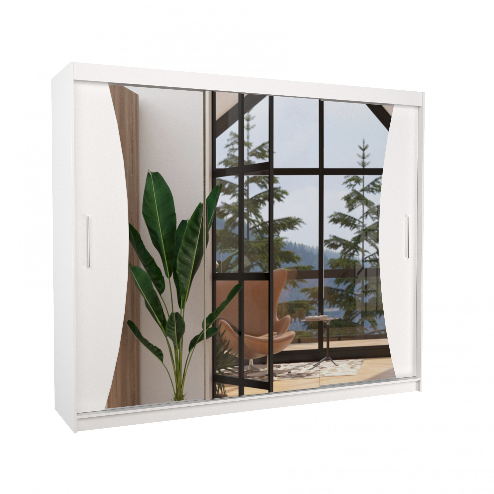 Tolóajtós szekrény tükörrel DIEGO 250 Fehér+Fehér