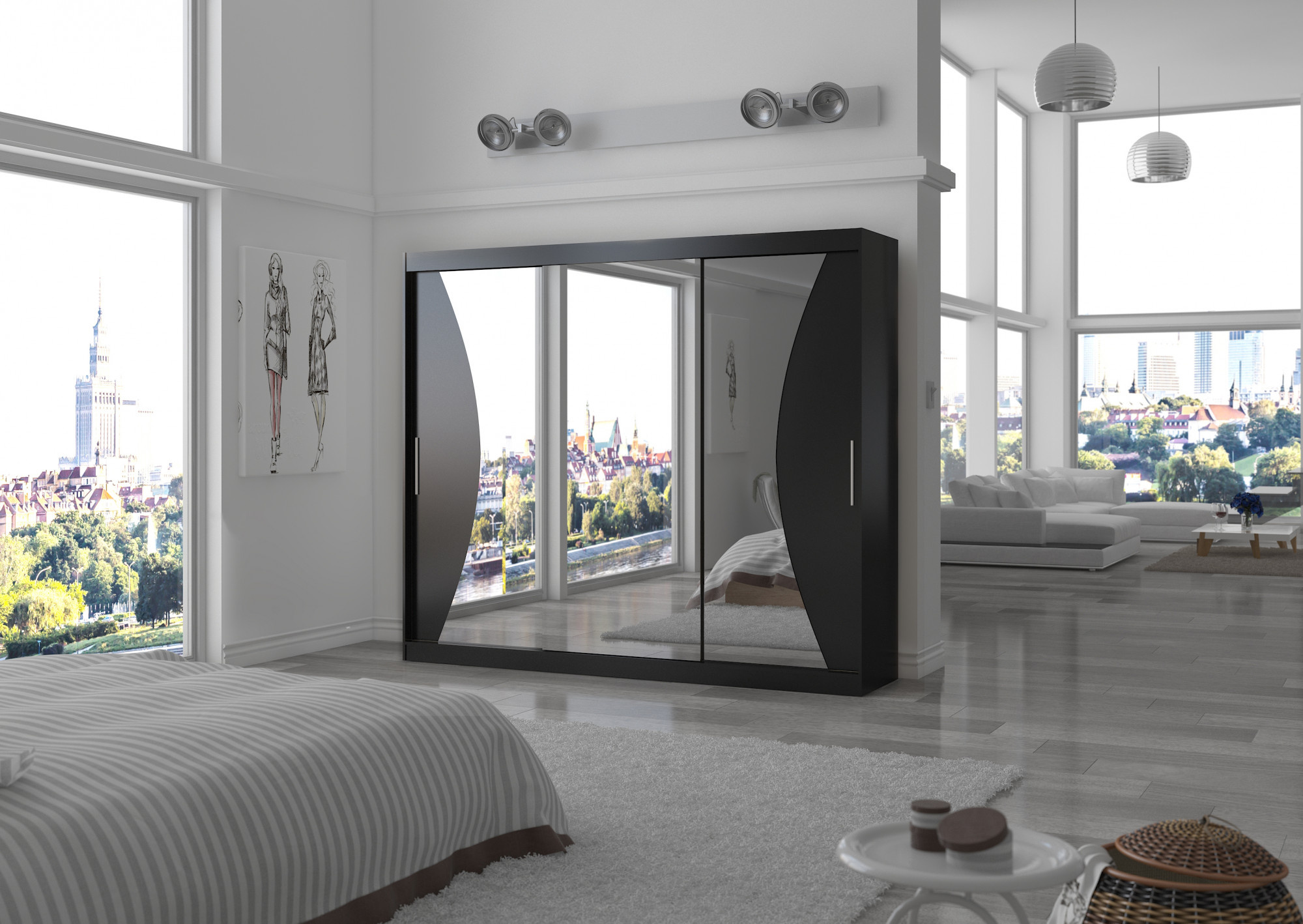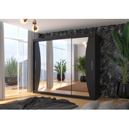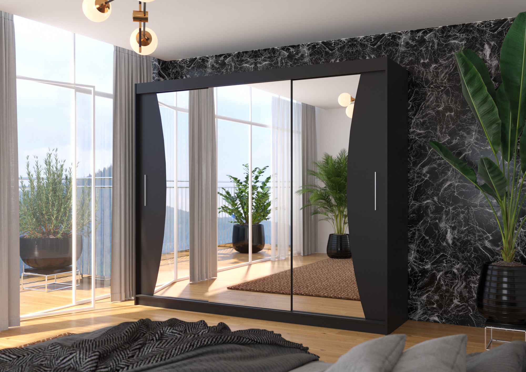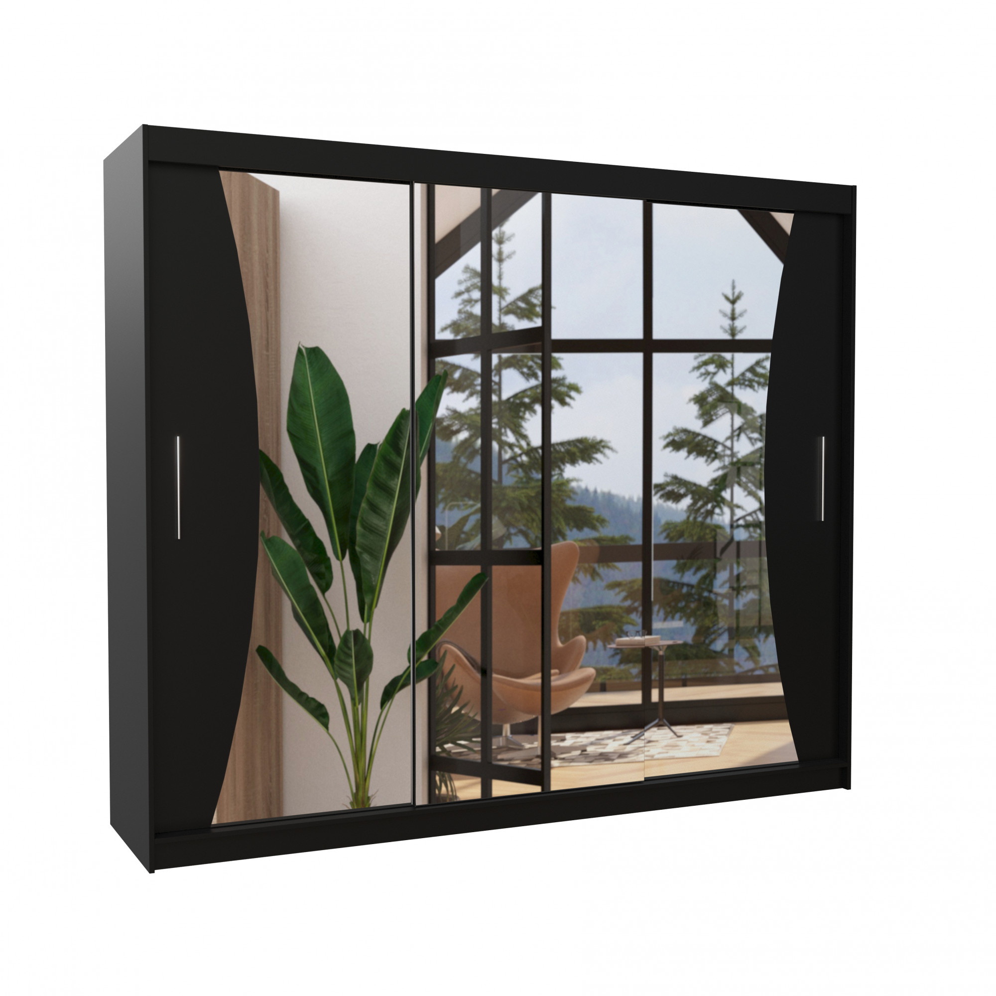 Tolóajtós szekrény tükörrel DIEGO 250 Fekete+Fekete