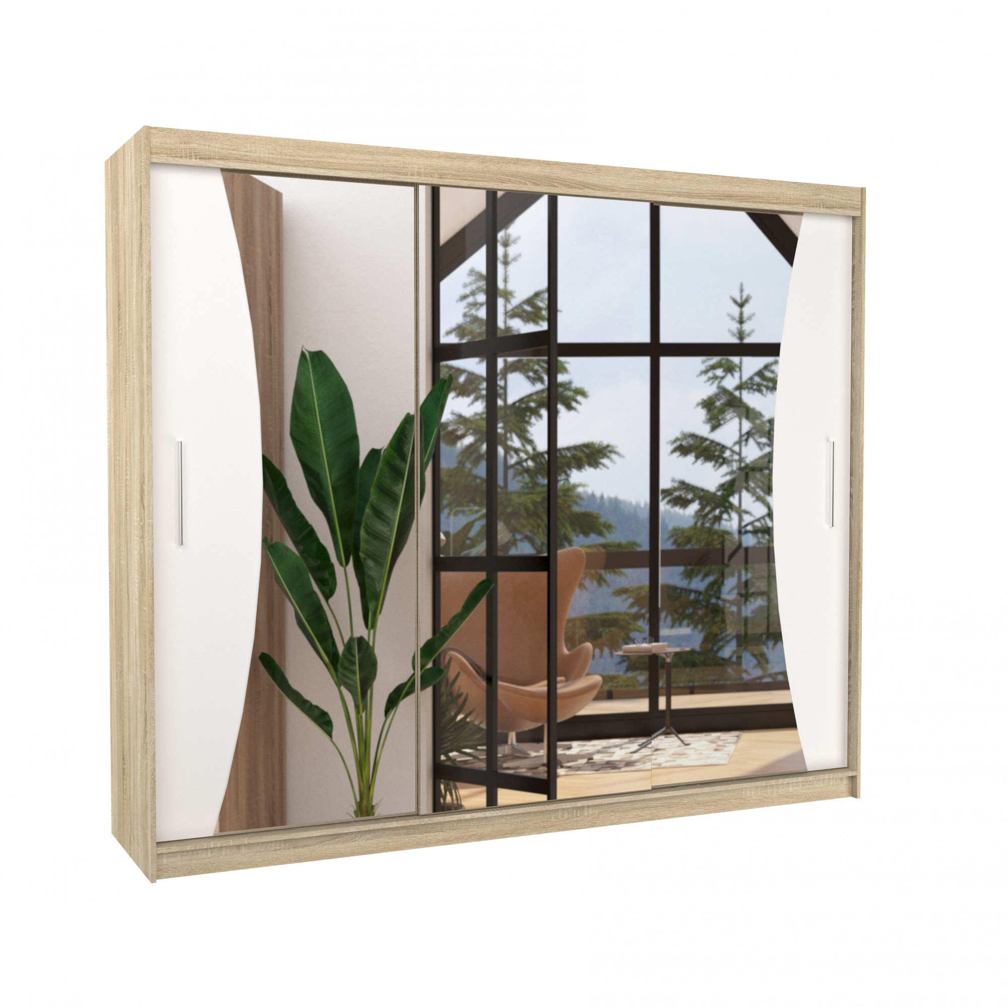 Tolóajtós szekrény tükörrel DIEGO 250 Sonoma+Fehér