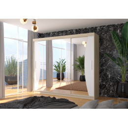 A tolóajtós és tükrös DIEGO gardróbszekrény ideális módja a tér rendezésének. A bútor tágas polcokkal és egy rúddal van felszerelve, amelyre felakaszthatja a ruhákat, öltönyöket, felsőruházatot vagy ingeket. Az elülső oldalra tükröket szereltek, amelyek optikailag növelik a teret. Annak köszönhetően, hogy a szekrény tolóajtós, nem kell további helyet biztosítani az ajtók kinyitásához, ami ideális megoldássá teszi egy kis szoba vagy keskeny előszoba számára.