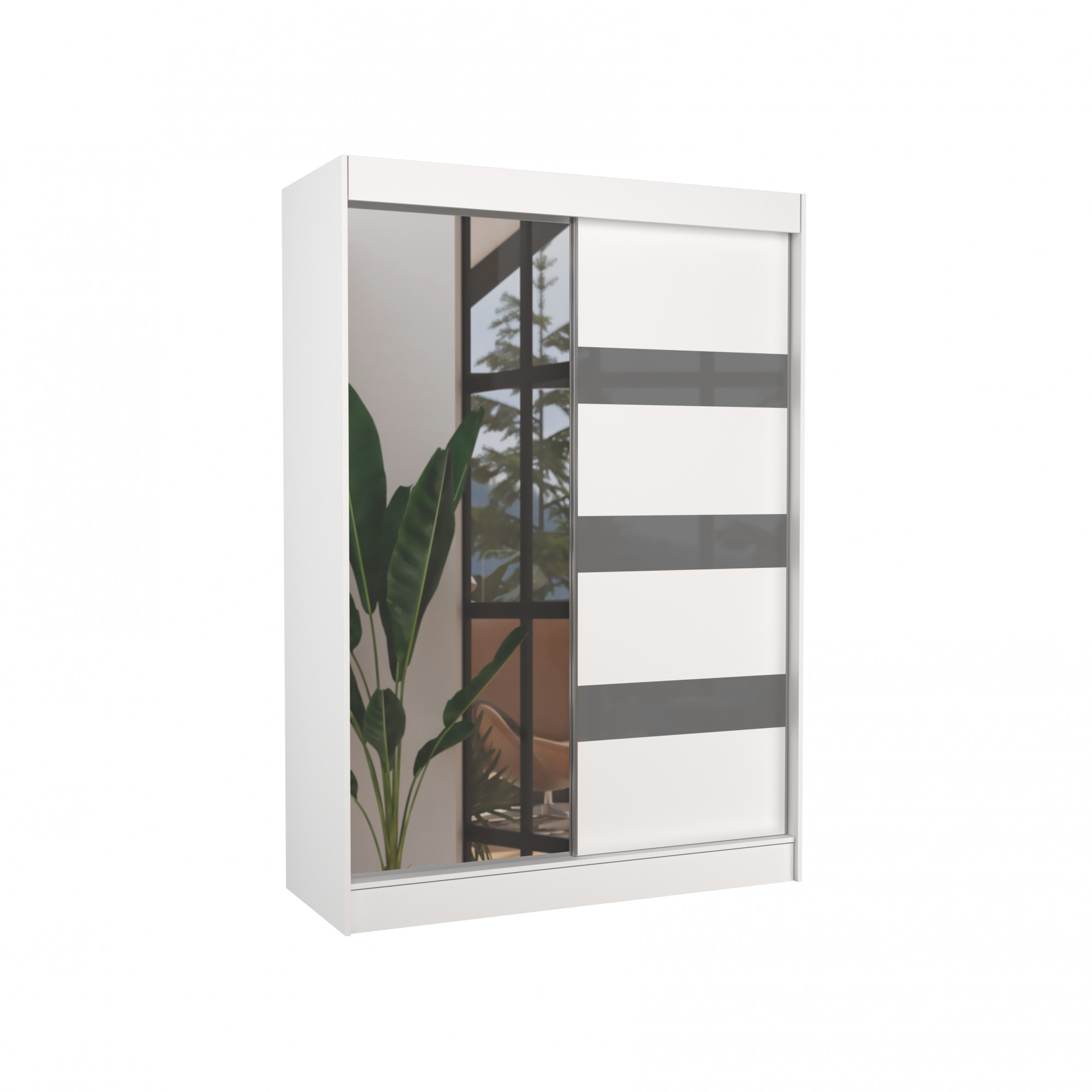 Tolóajtós szekrény tükörrel és lacobellel TOURA 150 Fehér+Szürke Lacobel