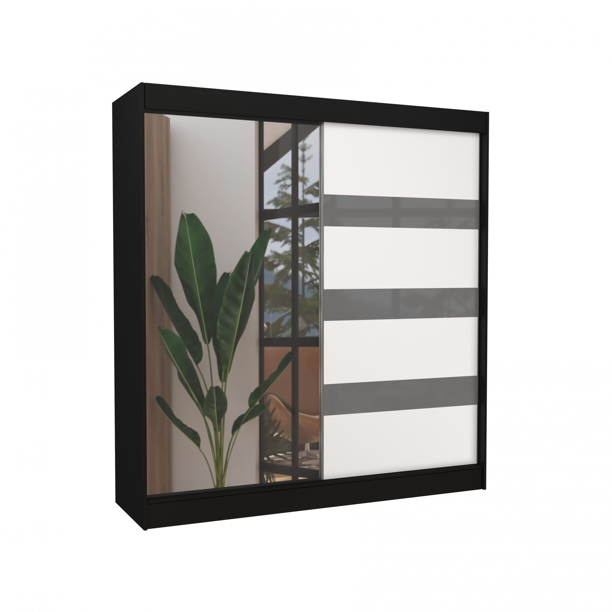 Tolóajtós szekrény tükörrel és lacobellel TOURA 200 Fekete+Fehér