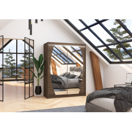 A tolóajtós, tükrös ALEN szekrény ideális módja a tér rendezésének. A bútor tágas polcokkal és egy rúddal van felszerelve, amelyre felakaszthatja a ruhákat, öltönyöket, felsőruházatot vagy ingeket. Az elülső oldalra tükröket szereltek, amelyek optikailag növelik a teret. Annak köszönhetően, hogy a szekrény tolóajtós, nem kell további helyet biztosítani az ajtók kinyitásához, ami ideális megoldássá teszi egy kis szoba vagy keskeny előszoba számára. Érdekes elem a látványos LED világítás, amely csodálatos bájt kölcsönöz a szekrénynek és a helyiségnek is.