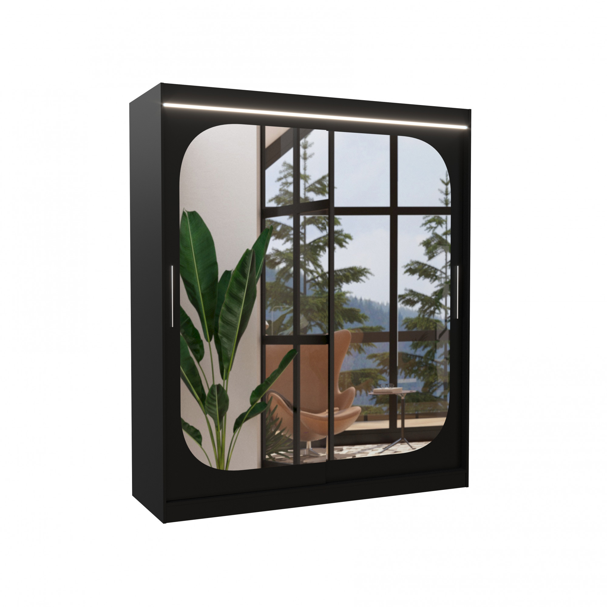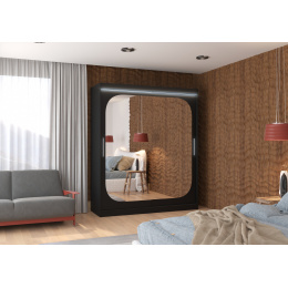 Tolóajtós szekrény tükörrel és LED világítással ARIZONA 180 Fekete+Fekete