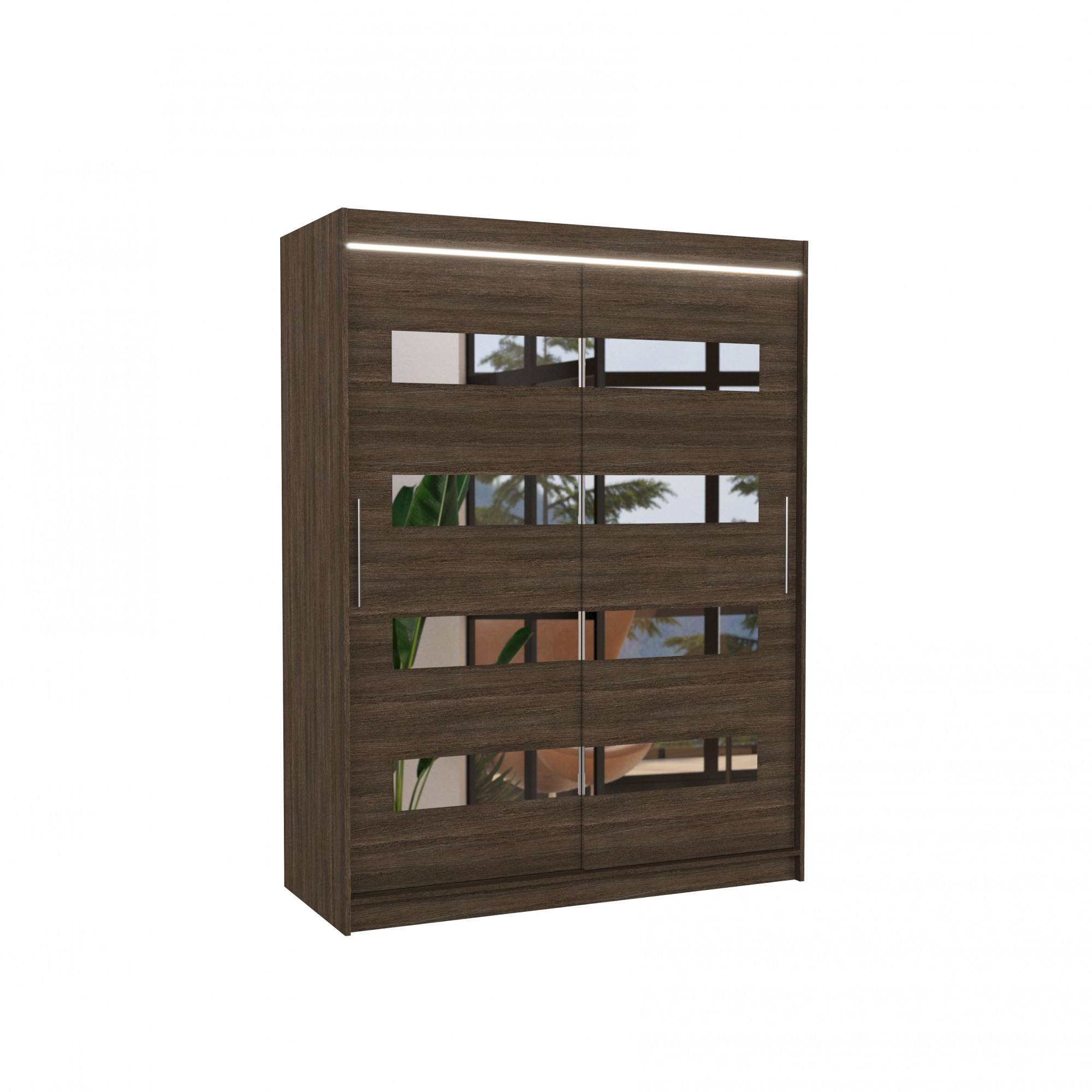 Tolóajtós szekrény tükörrel és LED világítással BALTIC 150 Choco+Choco