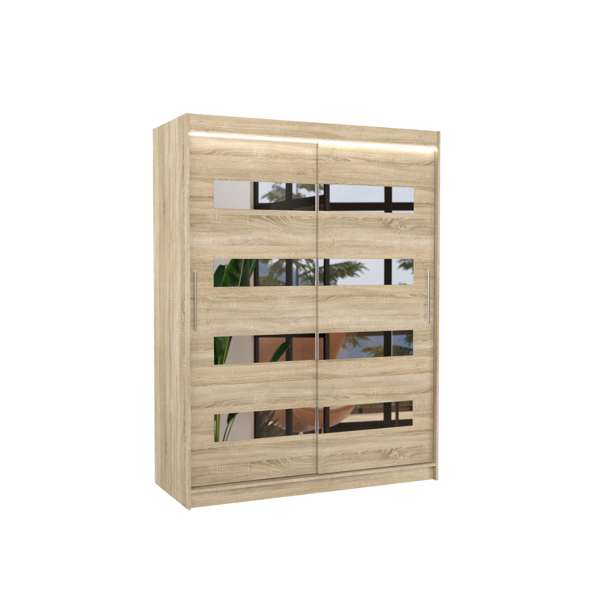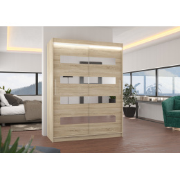 Tolóajtós szekrény tükörrel és LED világítással BALTIC 150 Sonoma+Sonoma