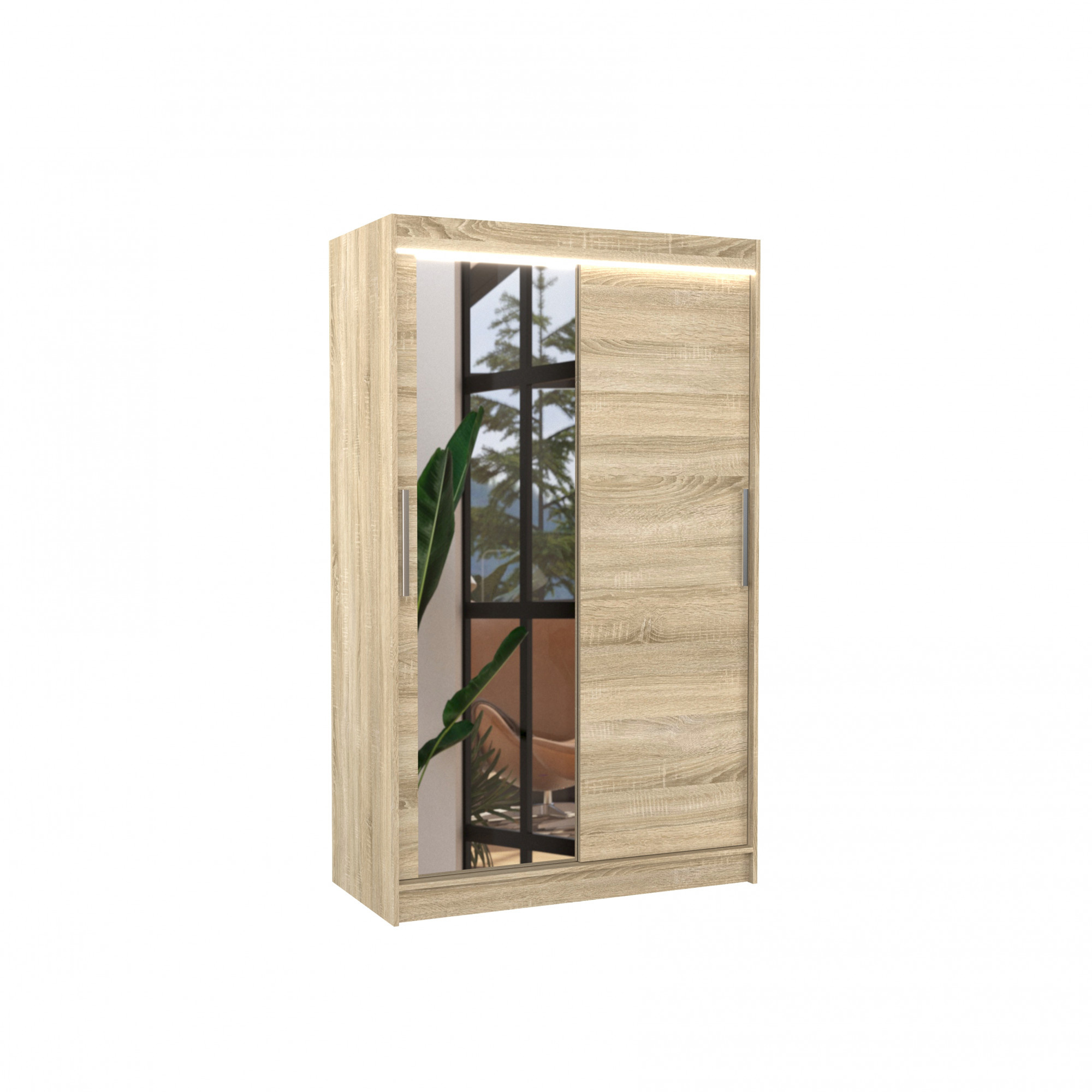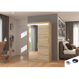 Tolóajtós szekrény tükörrel és LED világítással BARIO 120 Sonoma+Sonoma