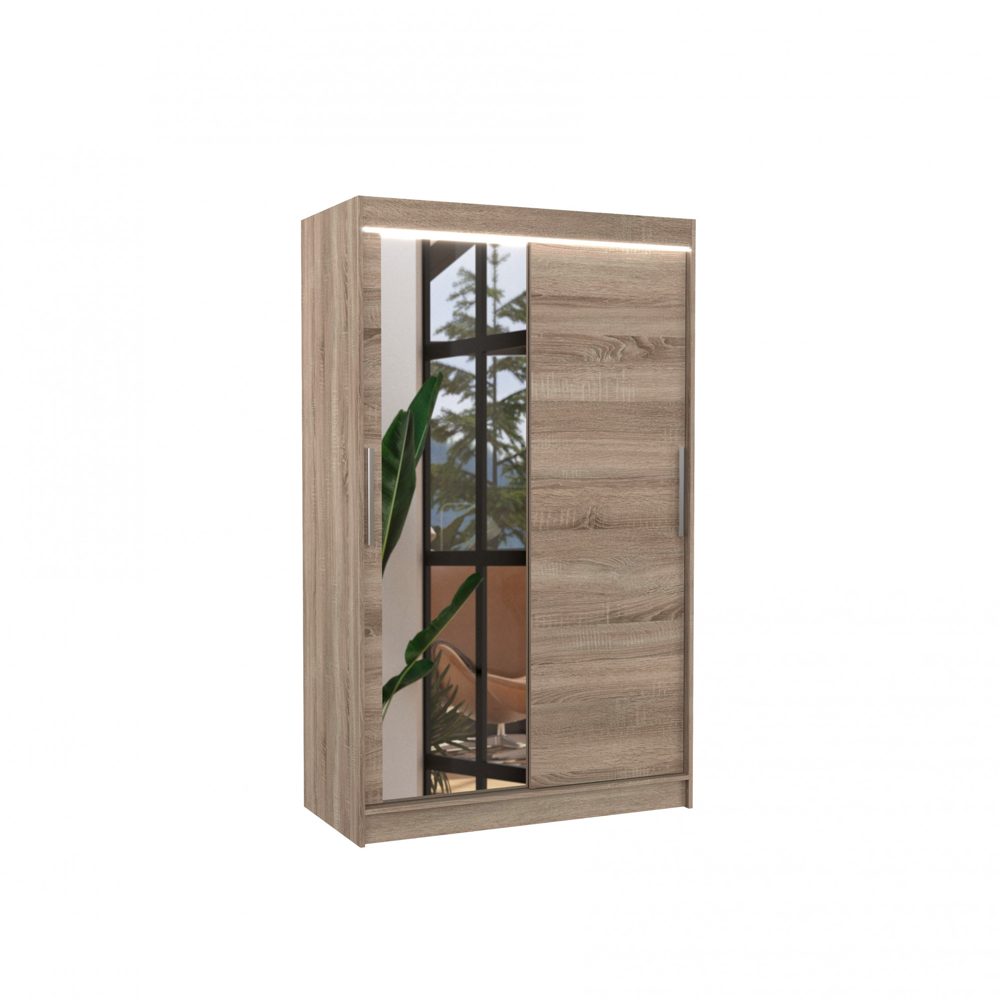 Tolóajtós szekrény tükörrel és LED világítással BARIO 120 Truffle+Truffle