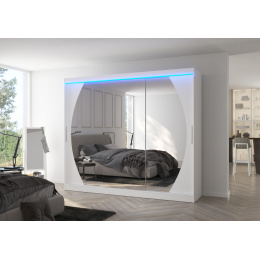 Tolóajtós szekrény tükörrel és LED világítással CAMBE 250 Fehér+Fehér