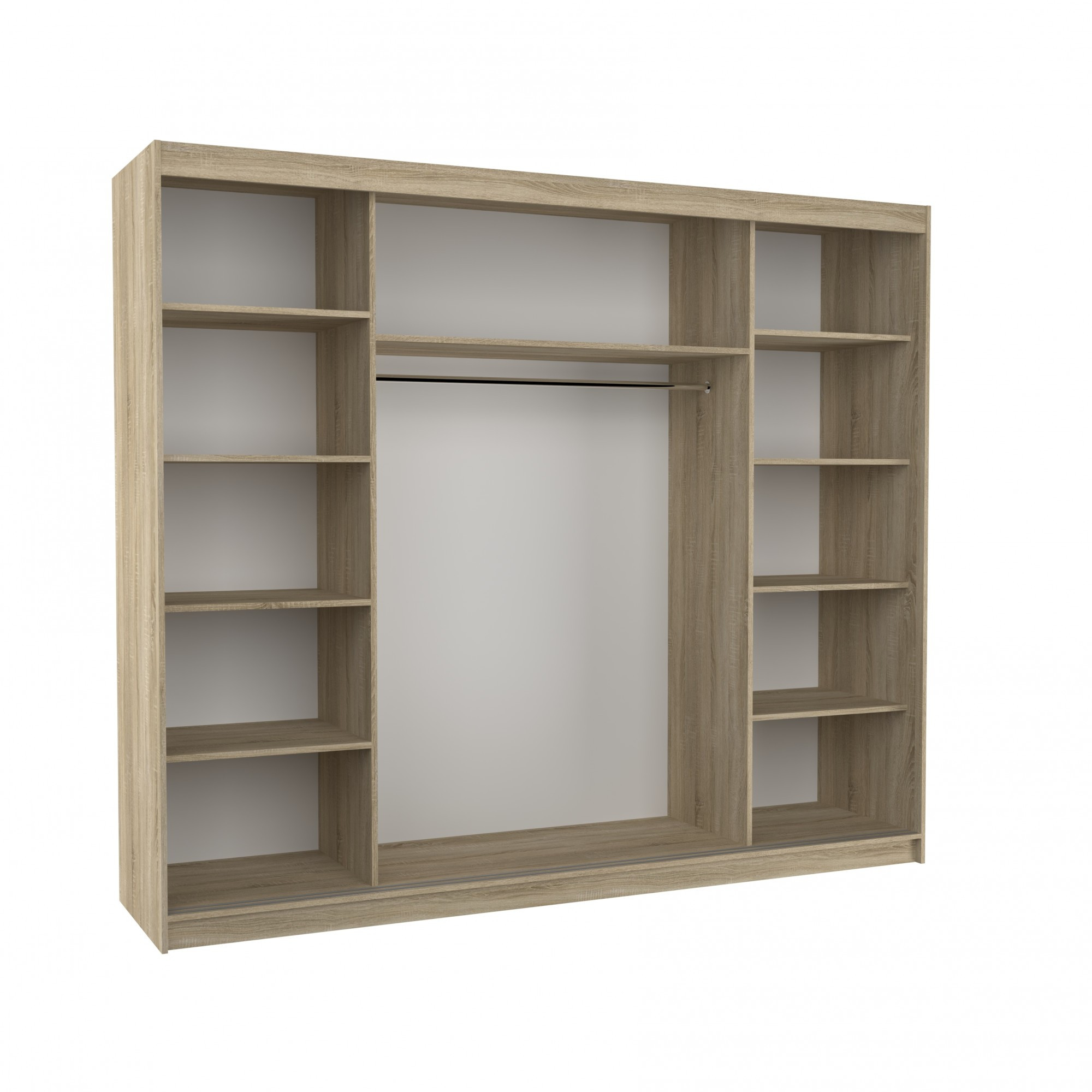 A CAMBE tolóajtós és tükrös ruhásszekrény ideális módja a tér rendezésének. A bútor tágas polcokkal és egy rúddal van felszerelve, amelyre felakaszthatja a ruhákat, öltönyöket, felsőruházatot vagy ingeket. Az elülső oldalra tükröket szereltek, amelyek optikailag növelik a teret. Annak köszönhetően, hogy a szekrény tolóajtós, nem kell további helyet biztosítani az ajtók kinyitásához, ami ideális megoldássá teszi egy kis szoba vagy keskeny előszoba számára. Érdekes elem a látványos LED világítás, amely csodálatos bájt kölcsönöz a szekrénynek és a helyiségnek is.