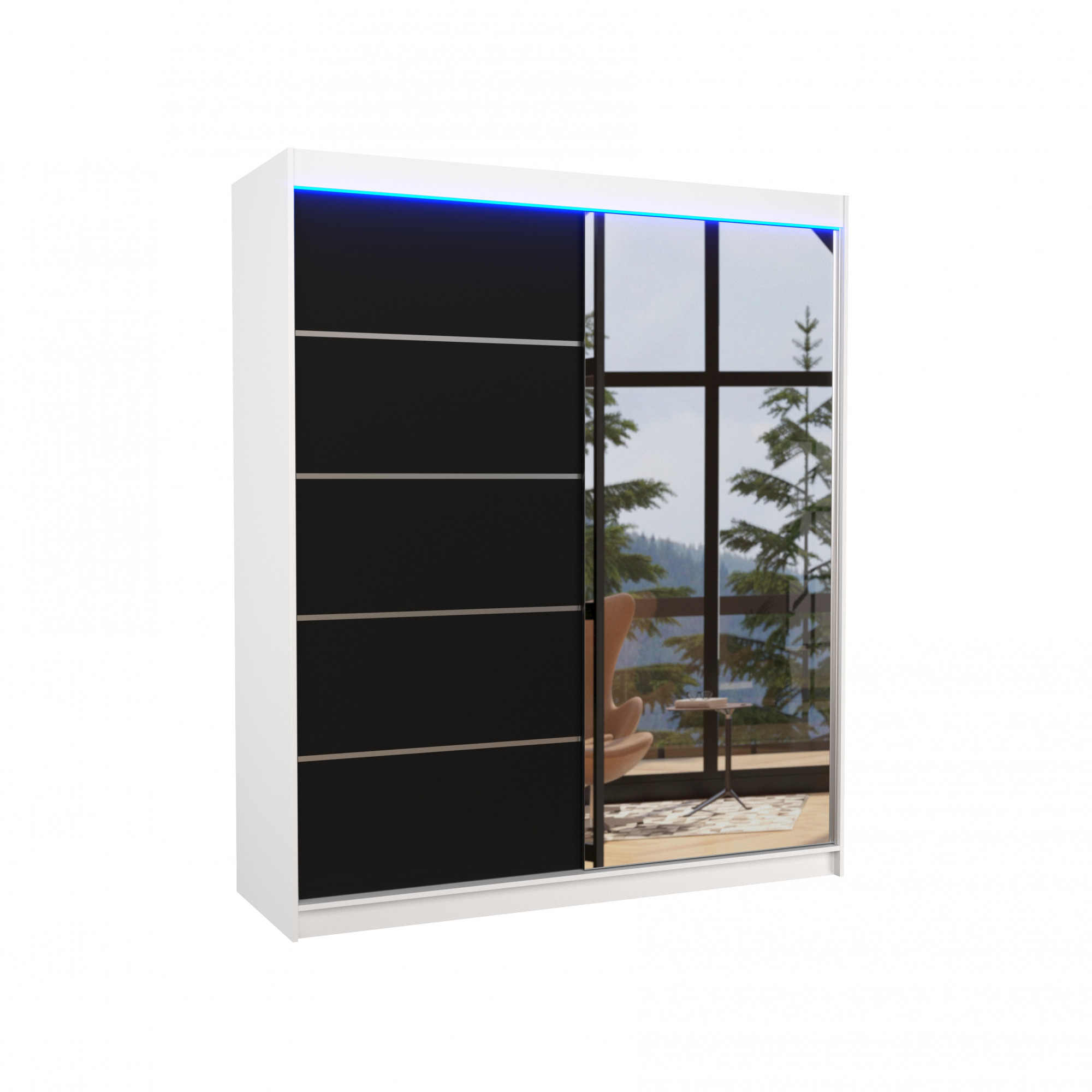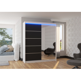 Tolóajtós szekrény tükörrel és LED világítással CARO 180 Fehér+Fekete