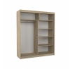A CARO ruhásszekrény ideális módja a tér rendezésének. A bútor tágas polcokkal és egy rúddal van felszerelve, amelyre felakaszthatja a ruhákat, öltönyöket, felsőruházatot vagy ingeket. Az elülső oldalon található egy tükör és jellegzetes vízszintes csíkok ezüst színben, amelyek különleges stílust kölcsönöznek a bútornak. Annak köszönhetően, hogy a szekrény tolóajtós, nem kell további helyet biztosítani az ajtók kinyitásához, ami ideális megoldássá teszi egy kis szoba vagy keskeny előszoba számára. Érdekes elem a látványos LED világítás, amely csodálatos bájt kölcsönöz a szekrénynek és a helyiségnek is.