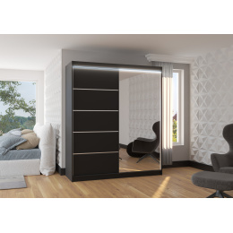 Tolóajtós szekrény tükörrel és LED világítással CARO 180 Fekete+Fekete