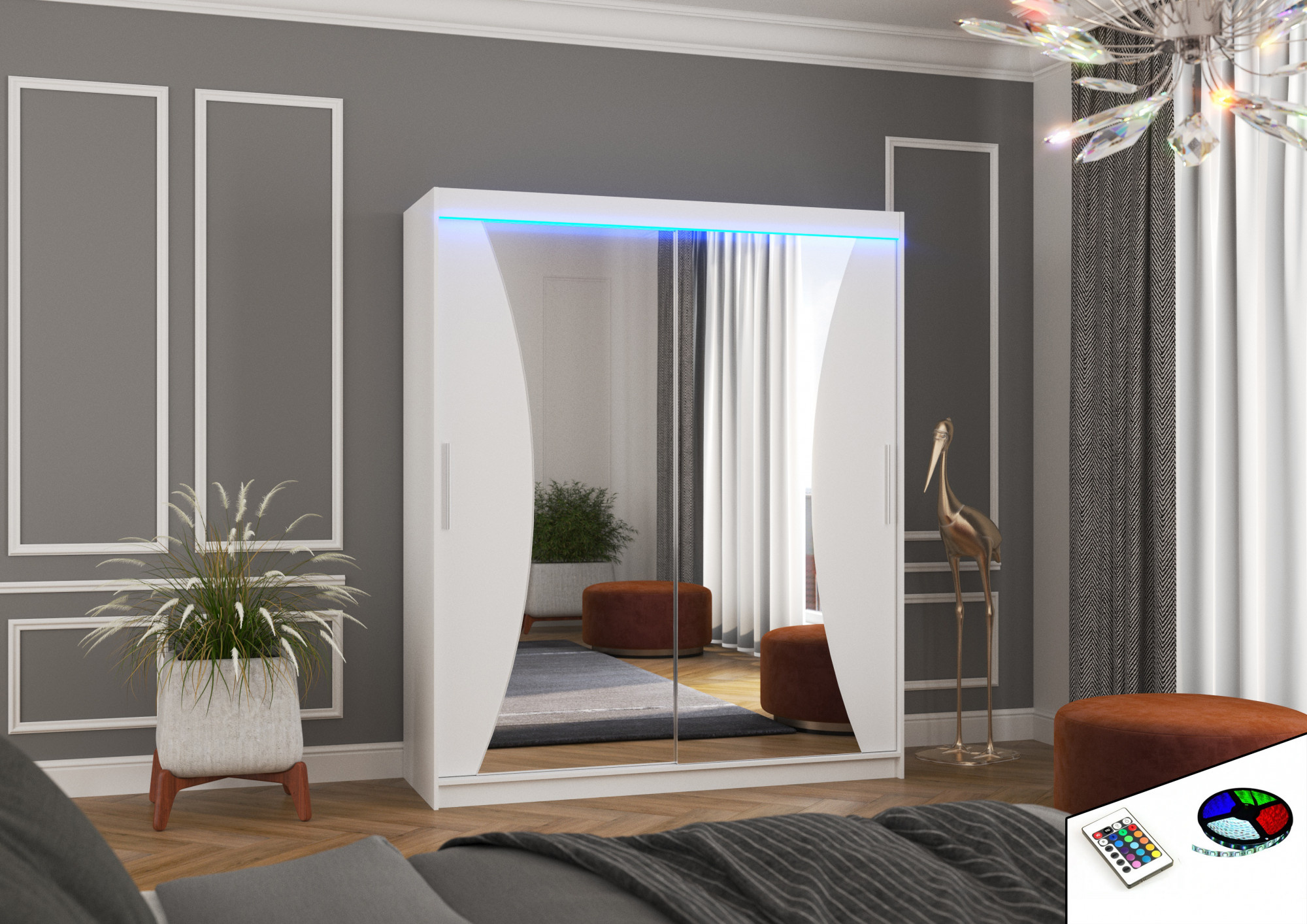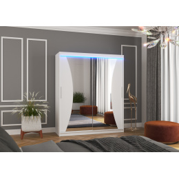 Tolóajtós szekrény tükörrel és LED világítással CHARLOTTE 180 Fehér+Fehér
