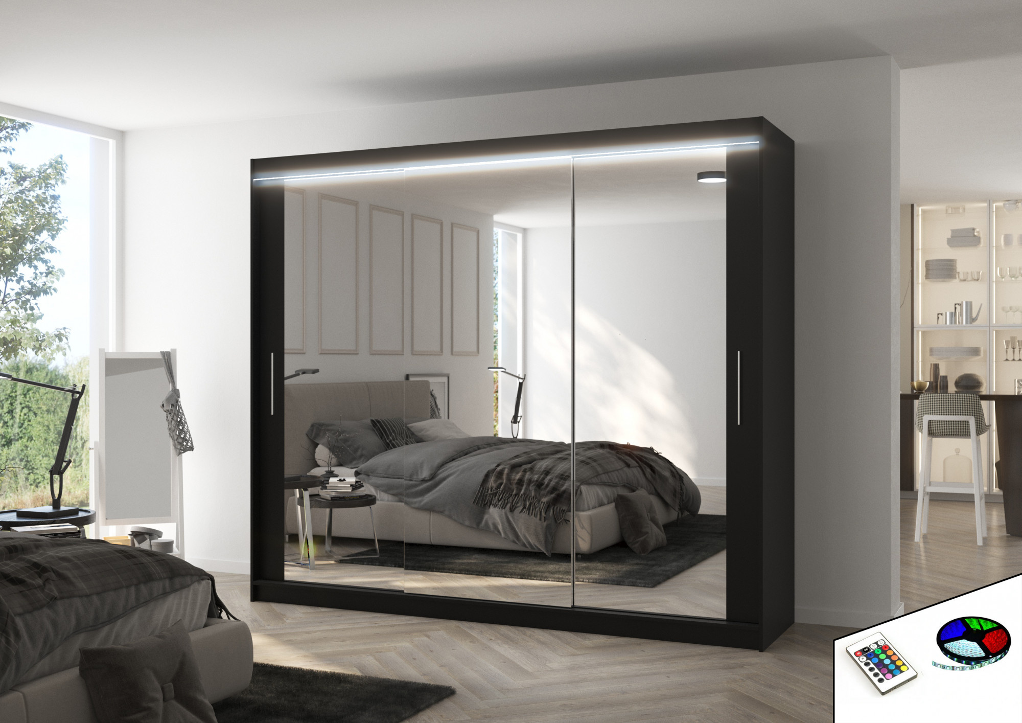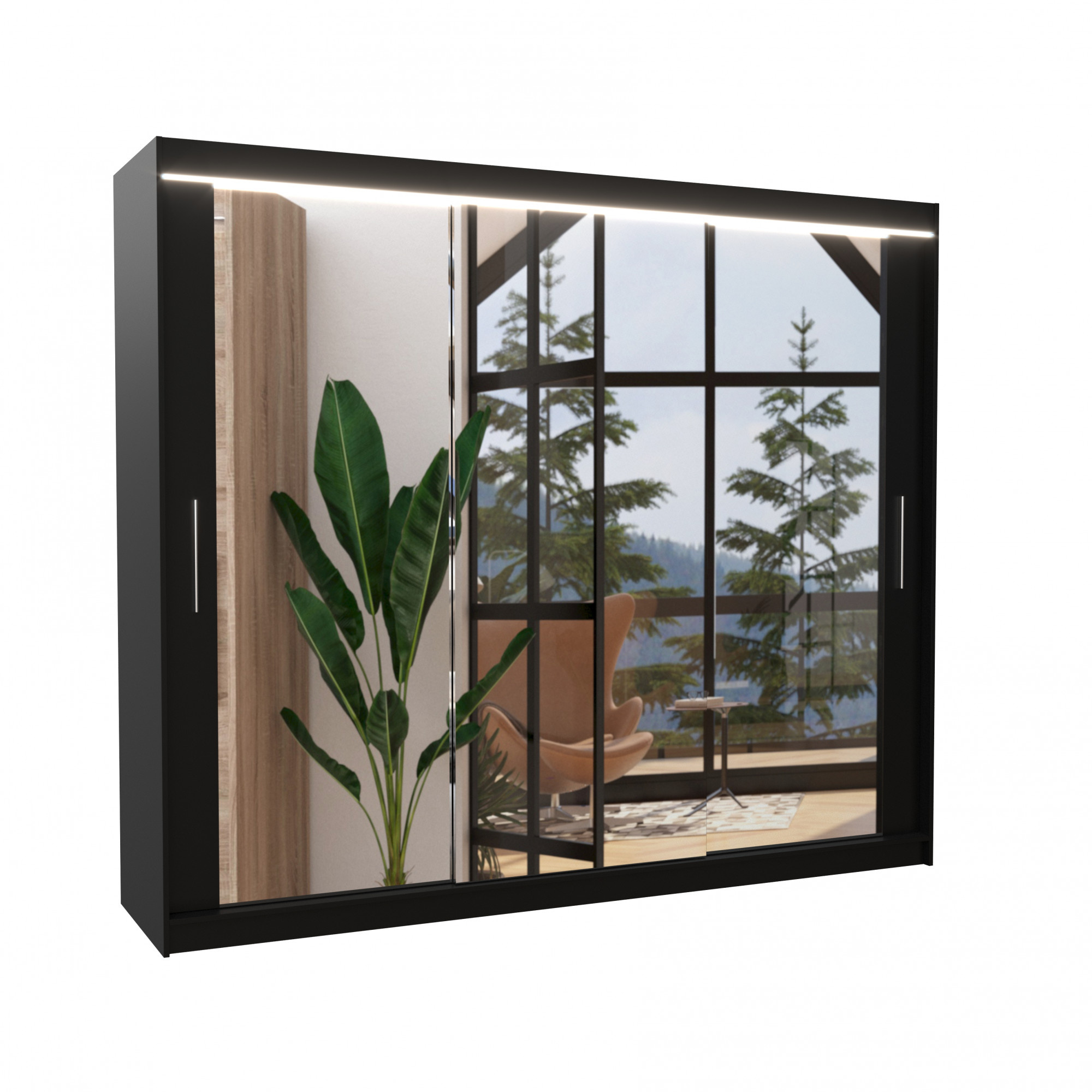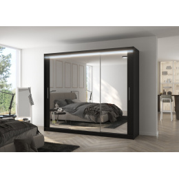 Tolóajtós szekrény tükörrel és LED világítással CHESTER 250 Fekete+Fekete
