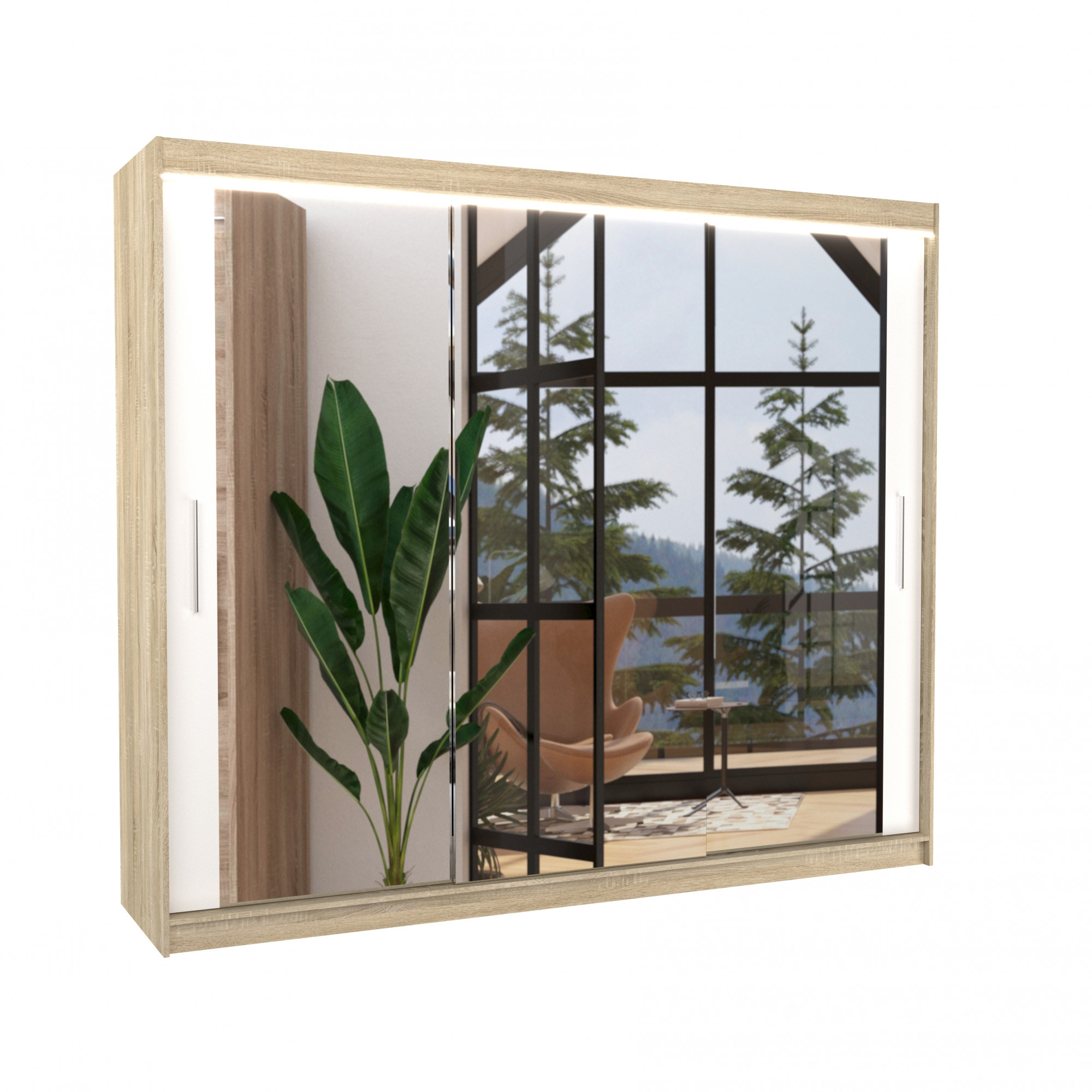 Tolóajtós szekrény tükörrel és LED világítással CHESTER 250 Sonoma+Fehér