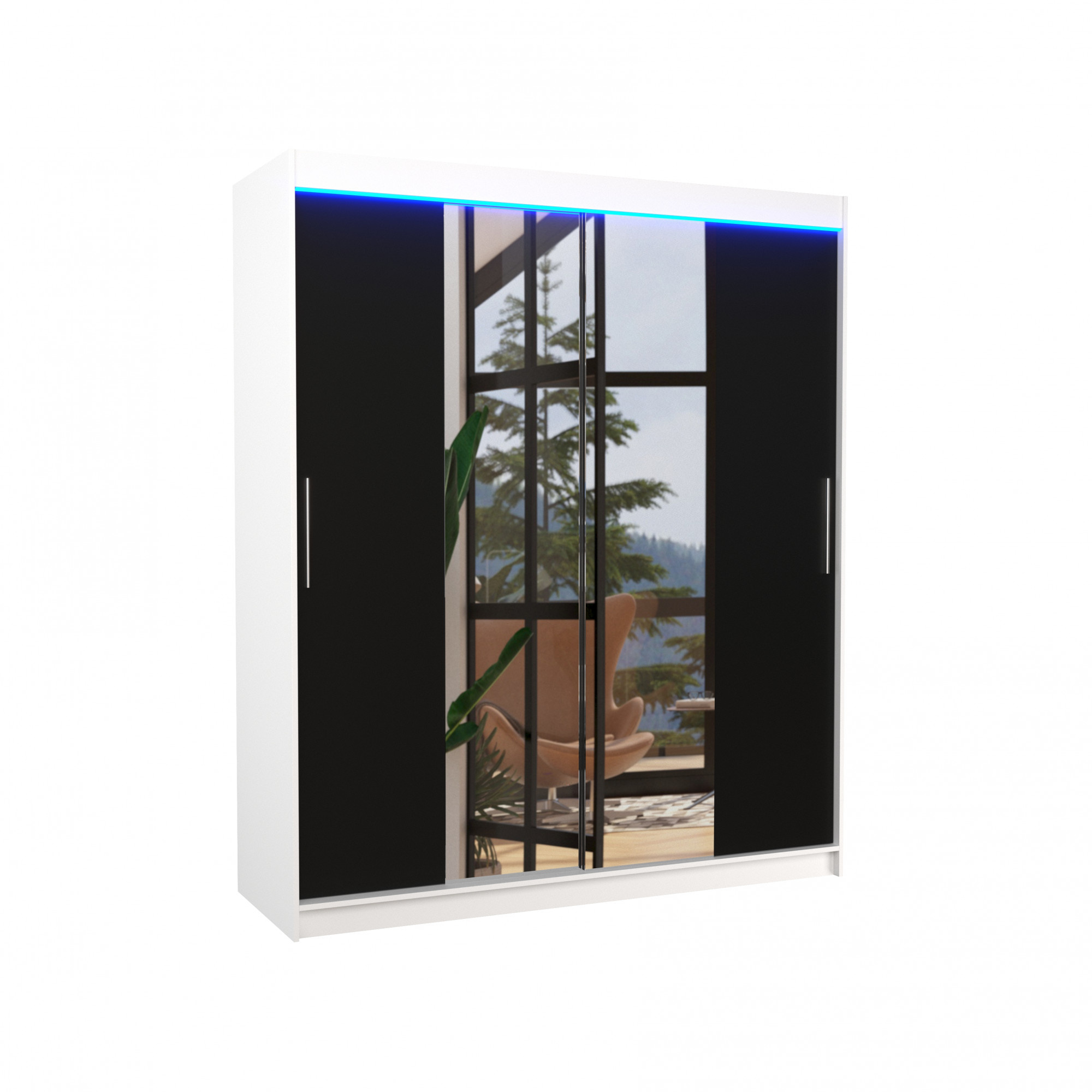 Tolóajtós szekrény tükörrel és LED világítással DALLAS 180 Fehér+Fekete