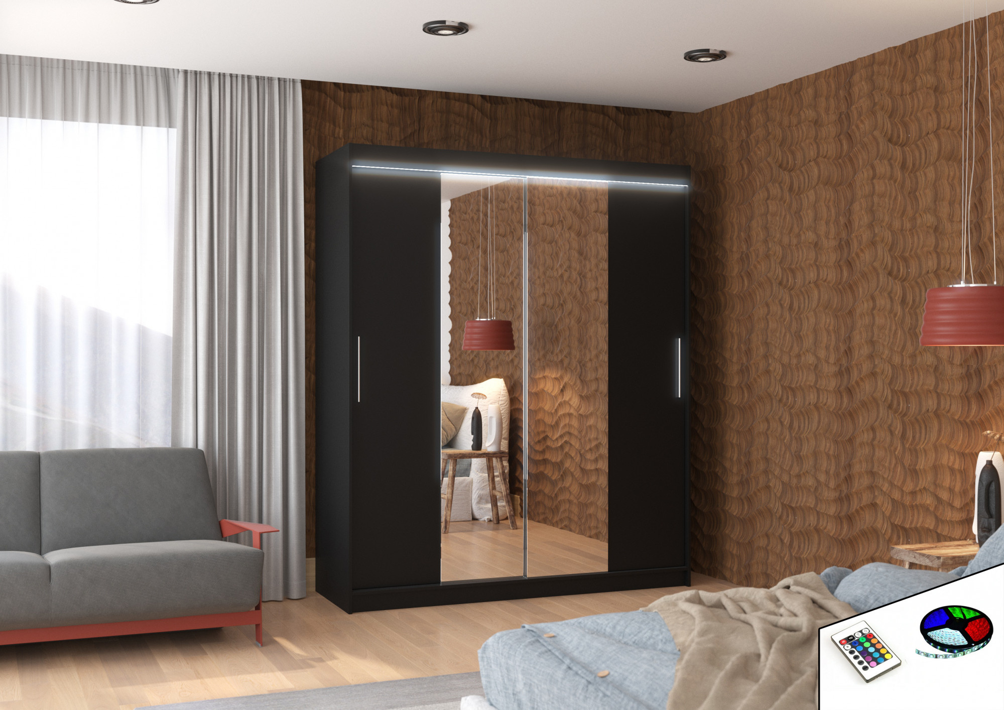 Tolóajtós szekrény tükörrel és LED világítással DALLAS 180 Fekete+Fekete