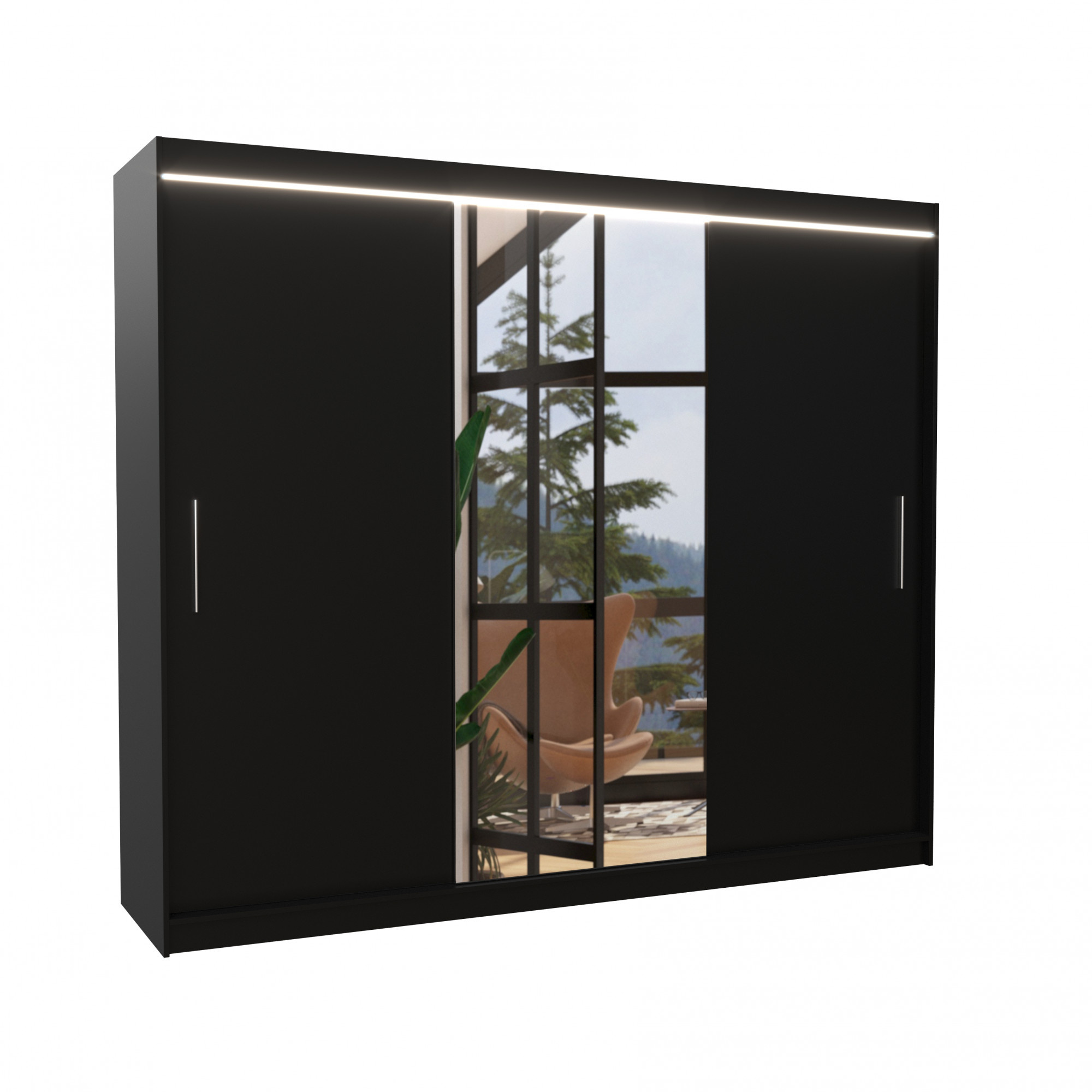 Tolóajtós szekrény tükörrel és LED világítással DENIS 250 Fekete+Fekete