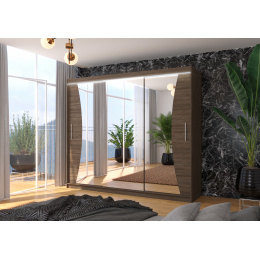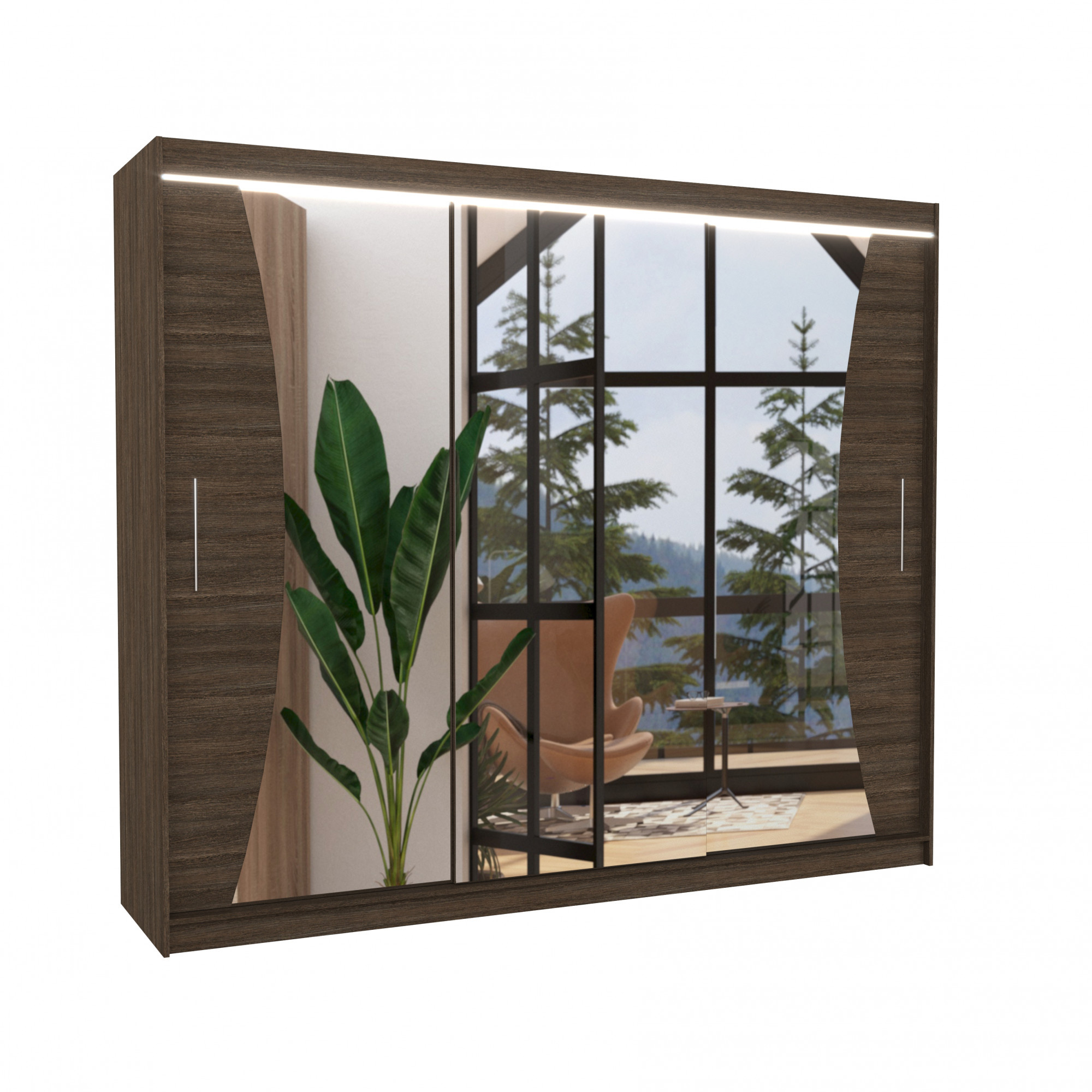 Tolóajtós szekrény, tükörrel és LED világítással DIEGO 250 Choco+Choco
