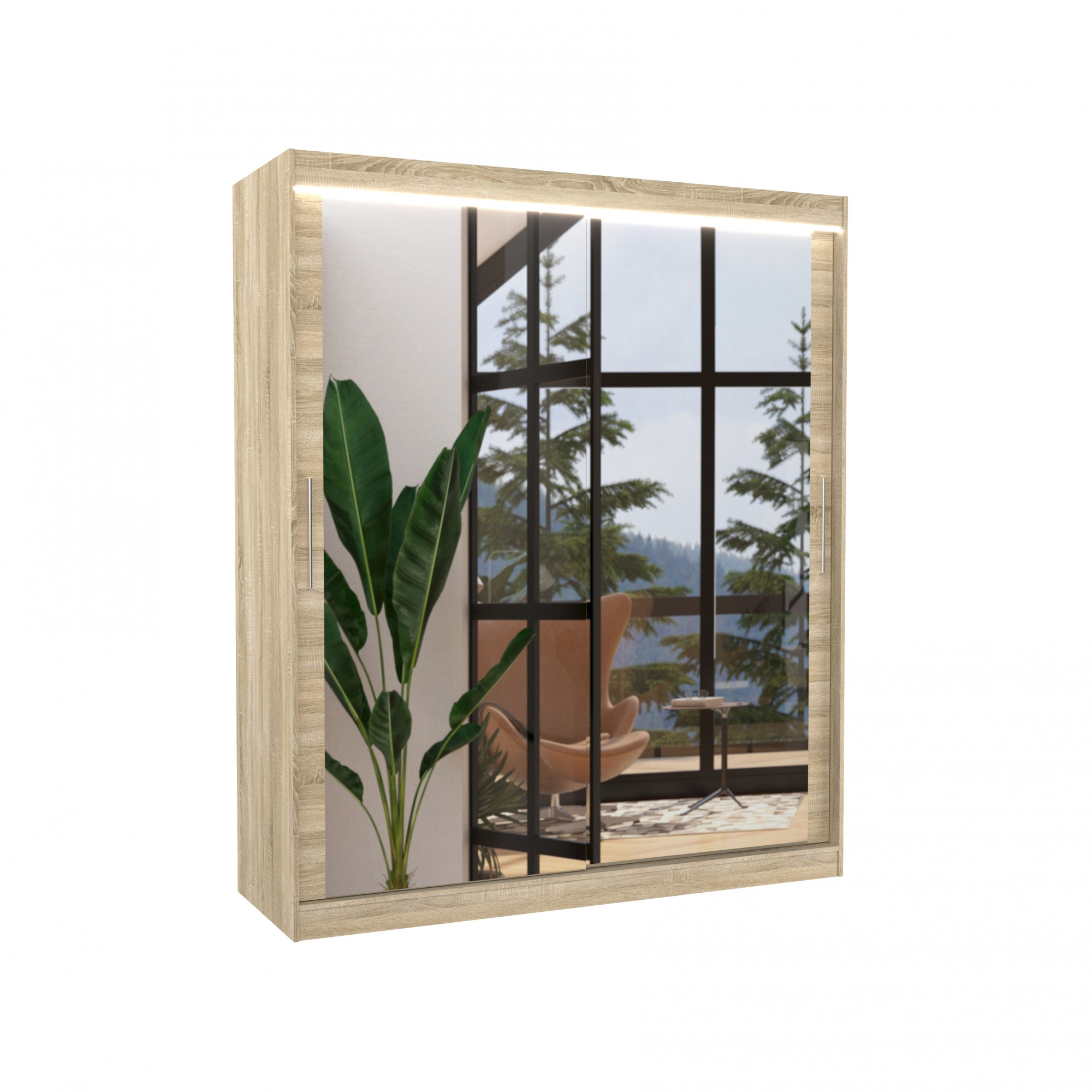 Tolóajtós szekrény tükörrel és LED világítással ETTORE 180 Sonoma+Sonoma