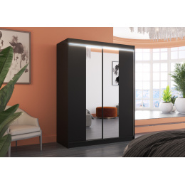 Tolóajtós szekrény tükörrel és LED világítással FEVER 150 Fekete+Fekete