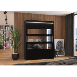 Tolóajtós szekrény tükörrel és LED világítással FLORENTO 150 Fekete+Fekete