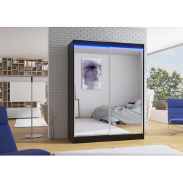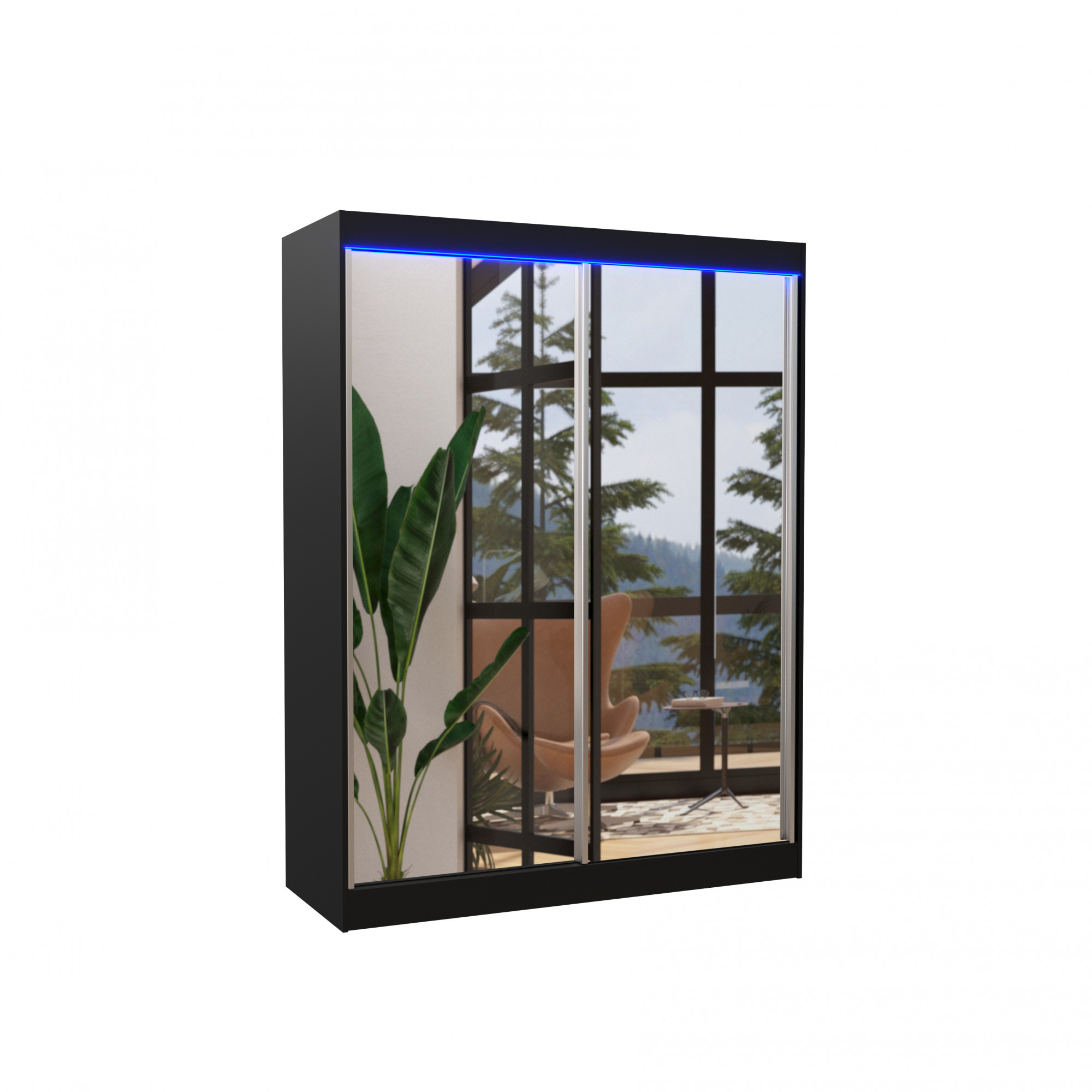 Tolóajtós szekrény tükörrel és LED világítással FLOREST 150 Fekete+Fekete