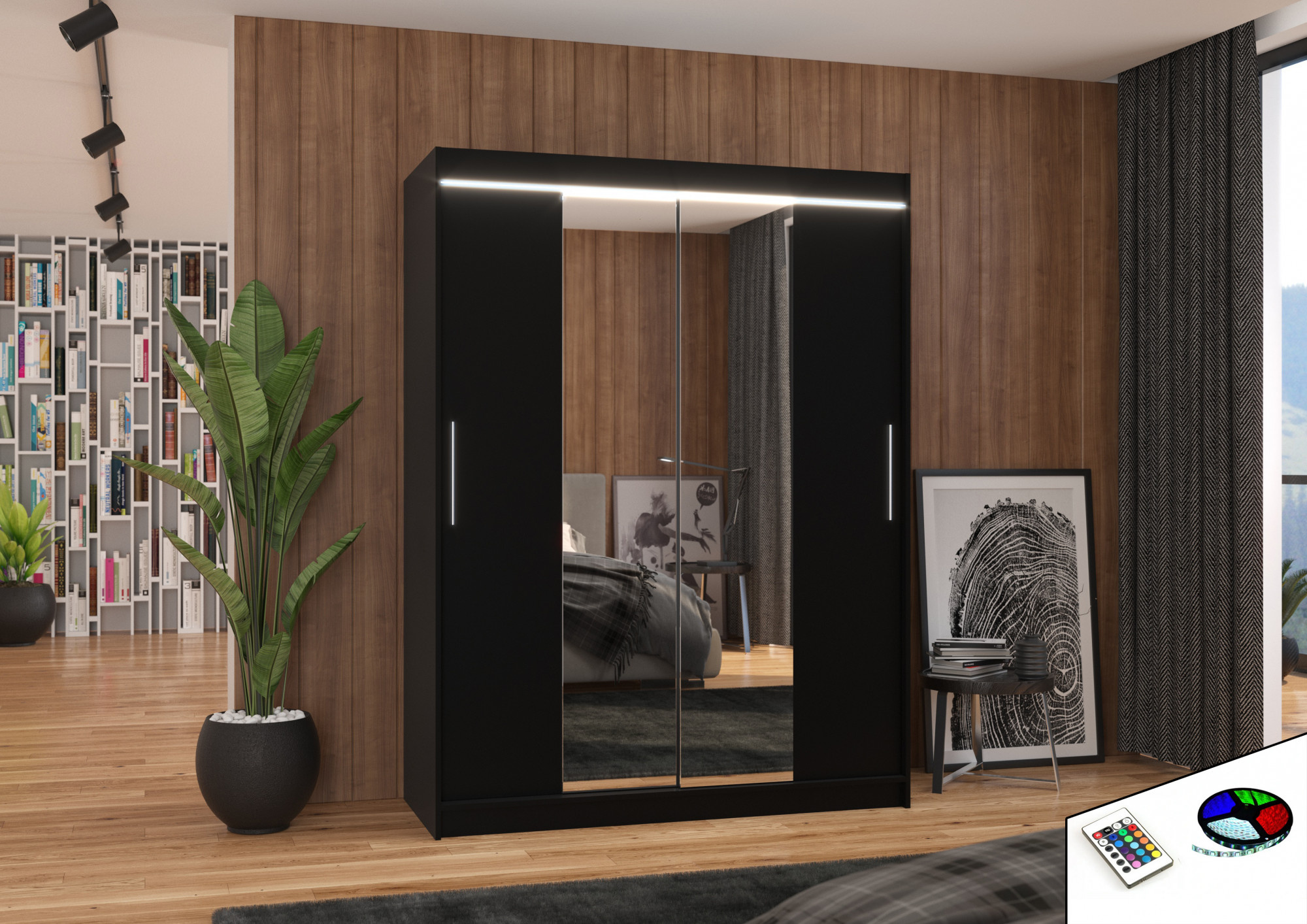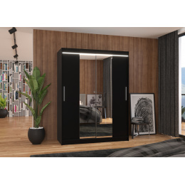 Tolóajtós szekrény tükörrel és LED világítással INESS 150 Fekete+Fekete
