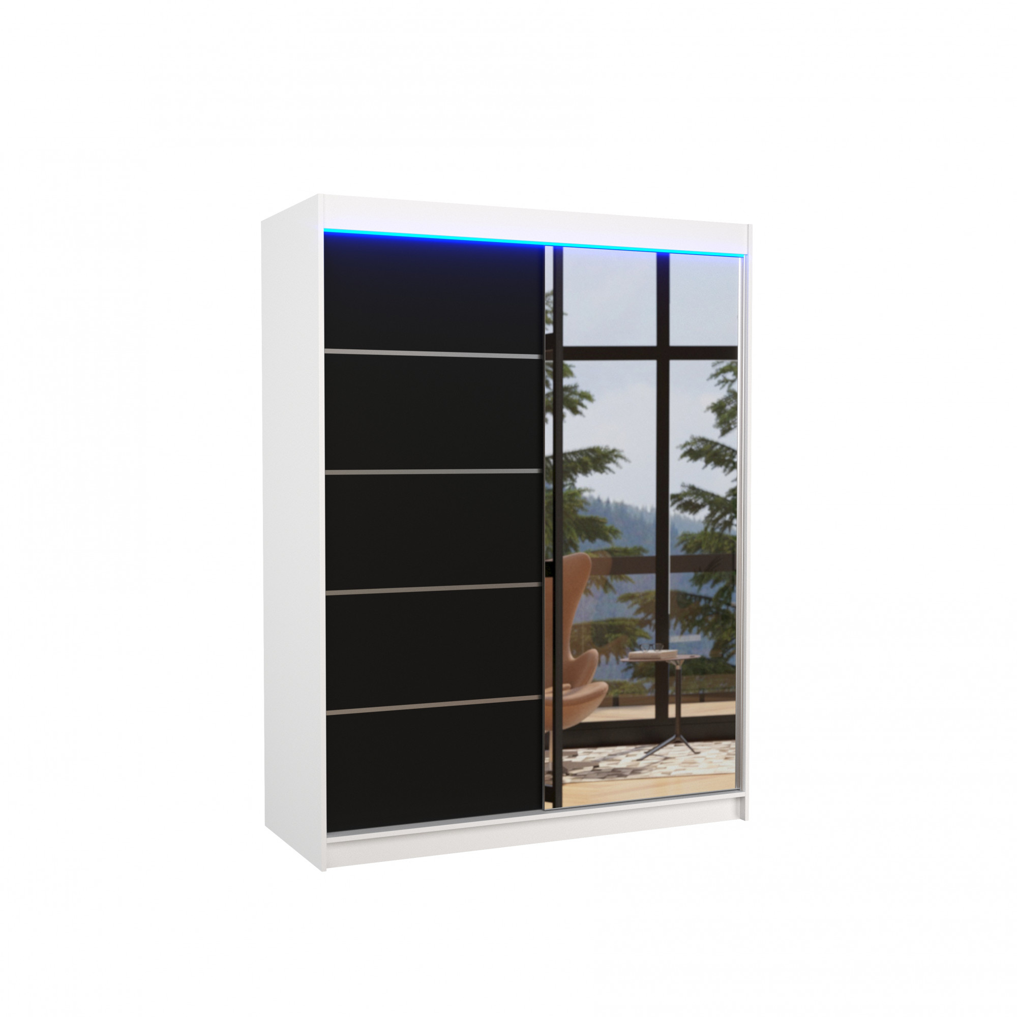 Tolóajtós szekrény tükörrel és LED világítással LIMBO 150 Fehér+Fekete