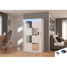 Tolóajtós szekrény tükörrel és LED világítással LUGANO 120 Fehér+Fehér