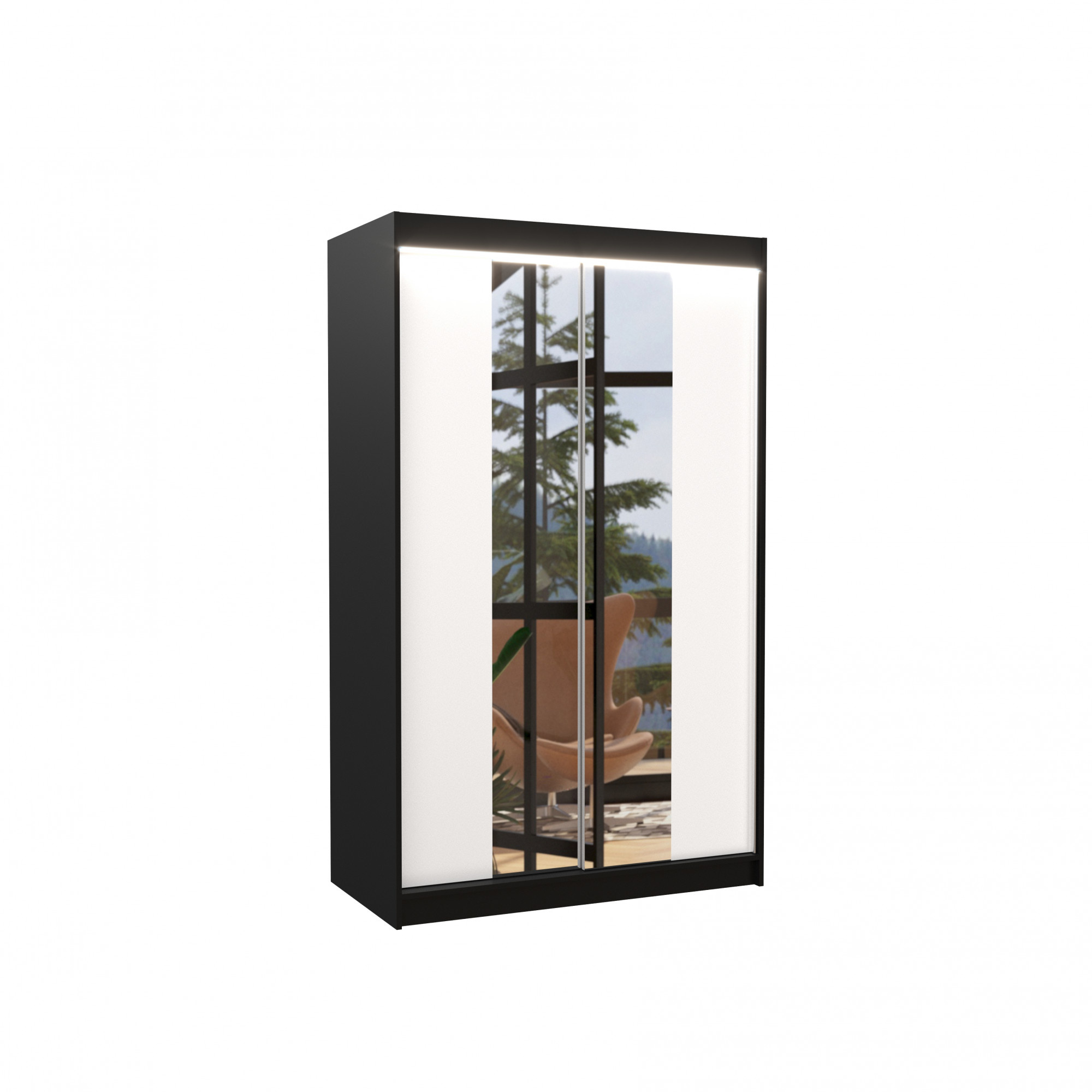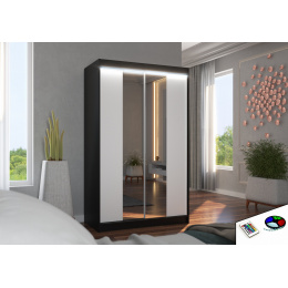 Tolóajtós szekrény tükörrel és LED világítással MARVIN 120 Fekete+Fehér