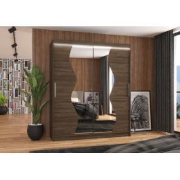 Tolóajtós szekrény, tükörrel és LED világítással MEDISON 180 Choco+Choco