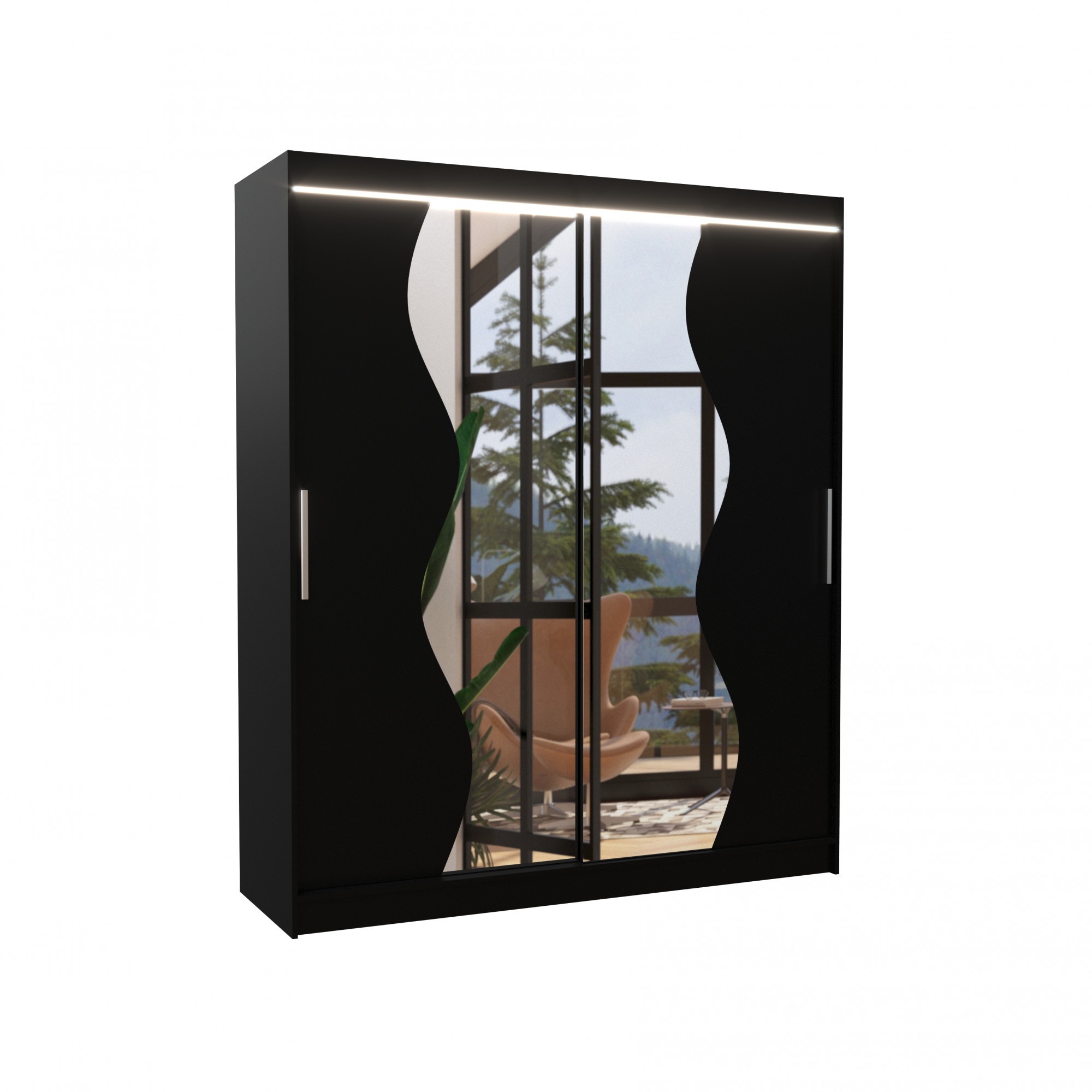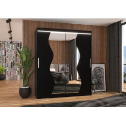 Tolóajtós szekrény tükörrel és LED világítással MEDISON 180, Fekete/Fekete