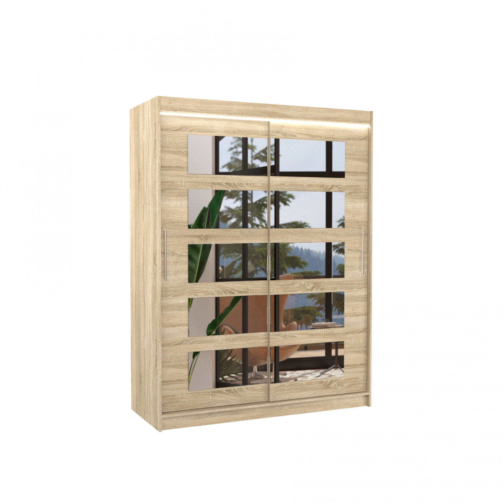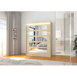 Tolóajtós szekrény tükörrel és LED világítással MURANI 150 Sonoma+Sonoma