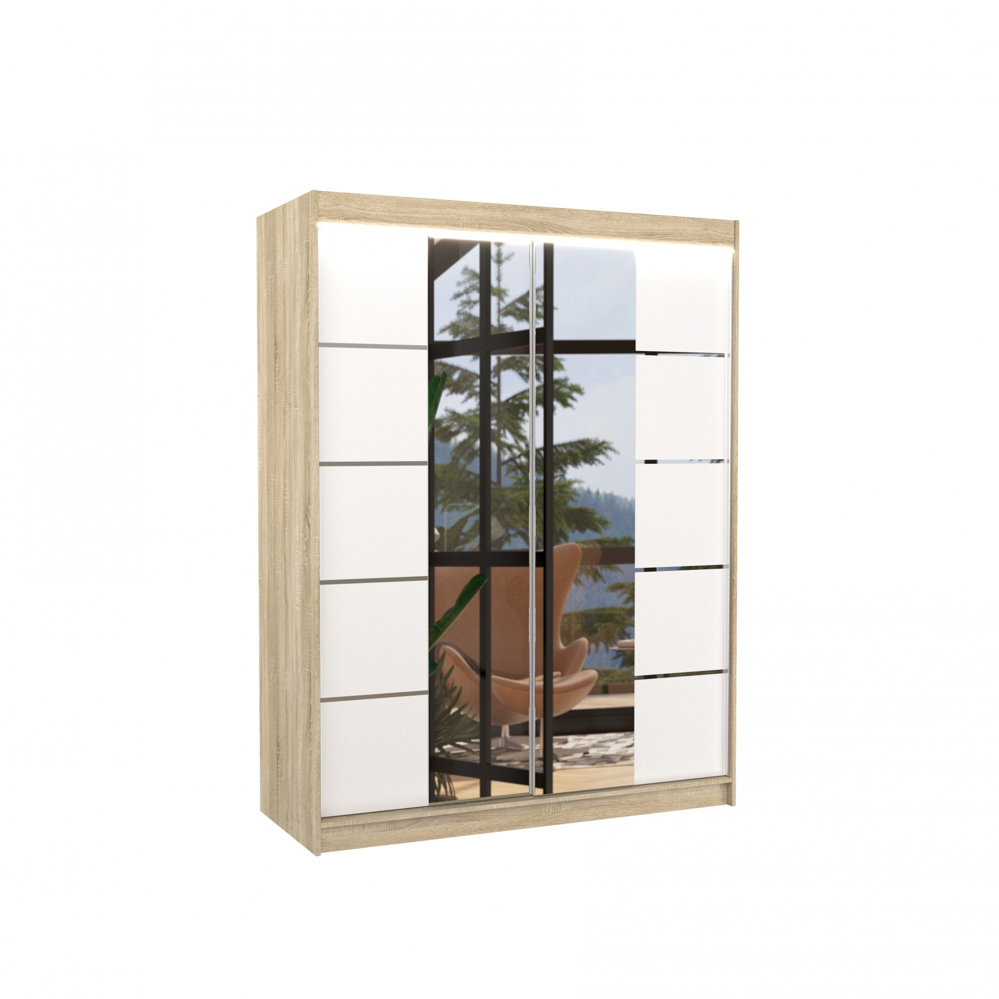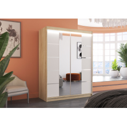 Tolóajtós szekrény tükörrel és LED világítással NORDIC 150 Sonoma+Fehér