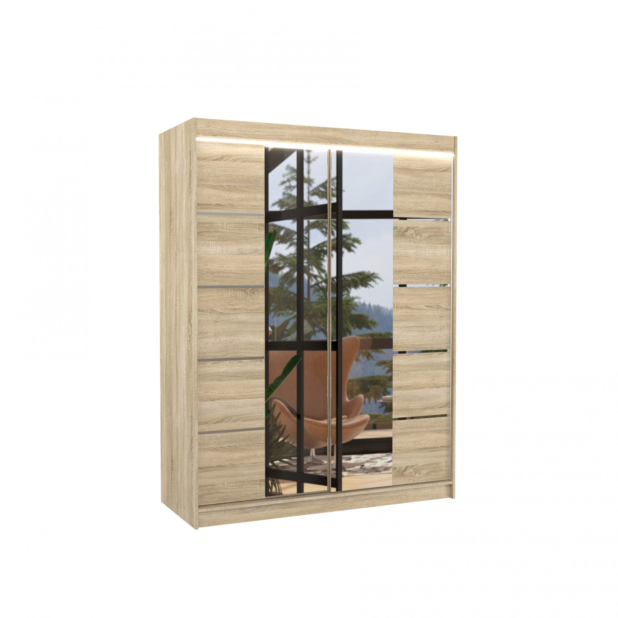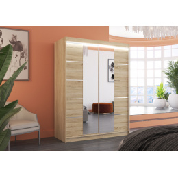 Tolóajtós szekrény tükörrel és LED világítással NORDIC 150 Sonoma+Sonoma