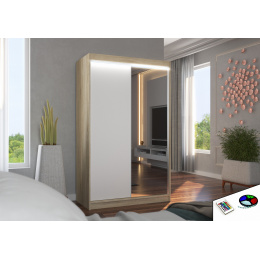 Tolóajtós szekrény tükörrel és LED világítással REWENA 120 Sonoma+Fehér