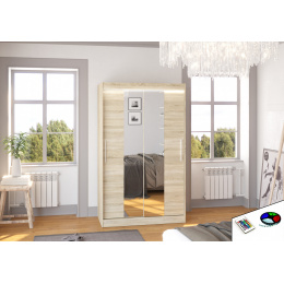 Tolóajtós szekrény tükörrel és LED világítással SANTOS 120 Sonoma+Sonoma