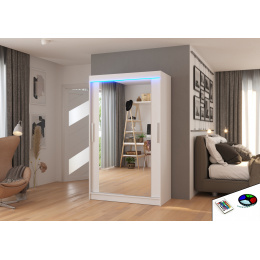 Tolóajtós szekrény tükörrel és LED világítással TIBAGO 120 Fehér+Fehér
