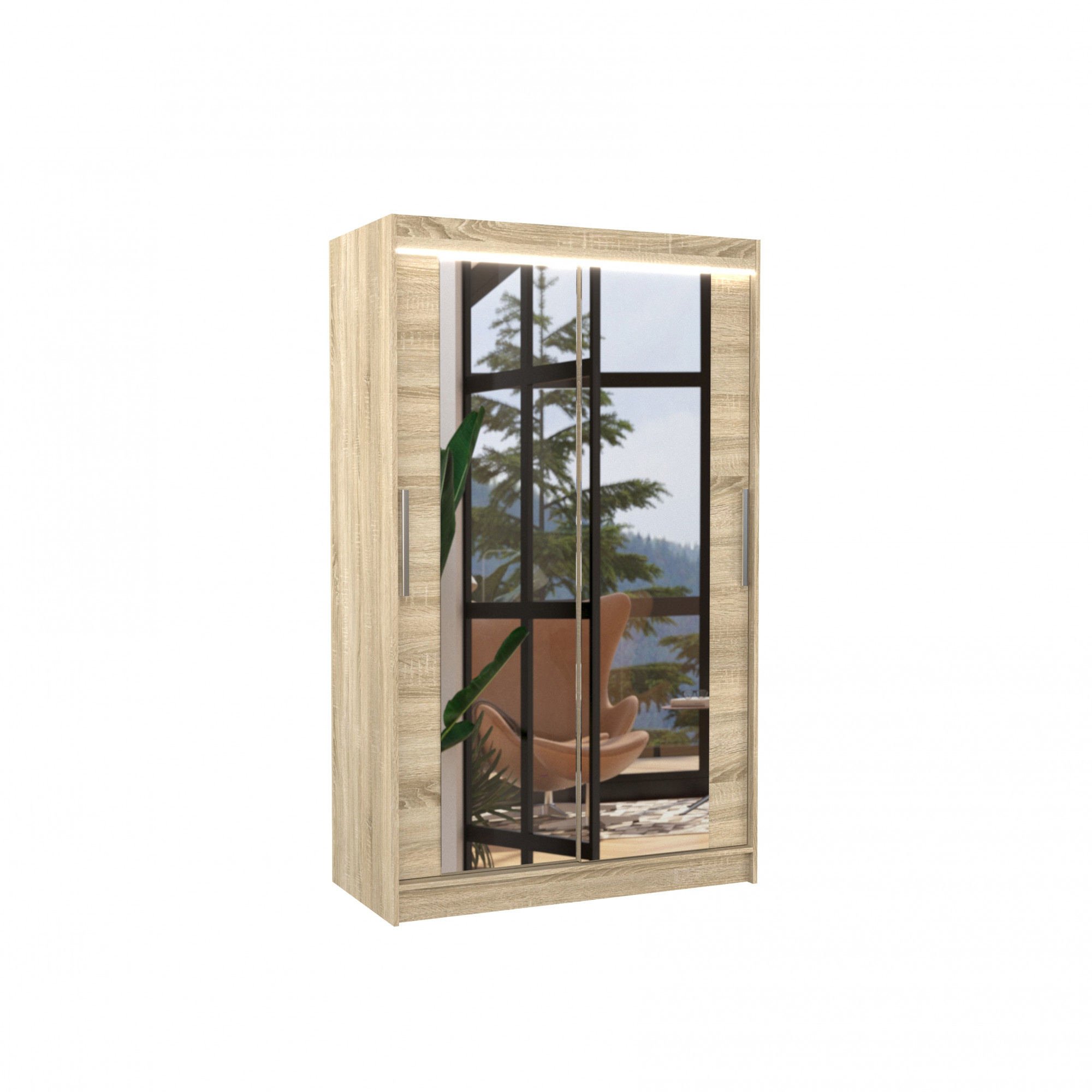 Tolóajtós szekrény tükörrel és LED világítással TIBAGO 120 Sonoma+Sonoma