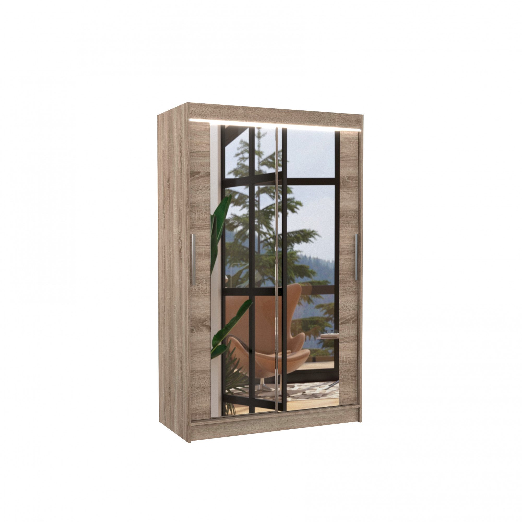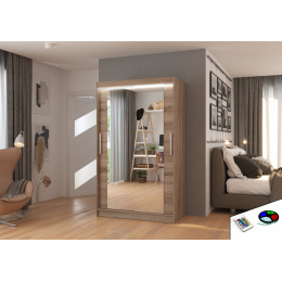 Tolóajtós szekrény tükörrel és LED világítással TIBAGO 120 Truffle+Truffle