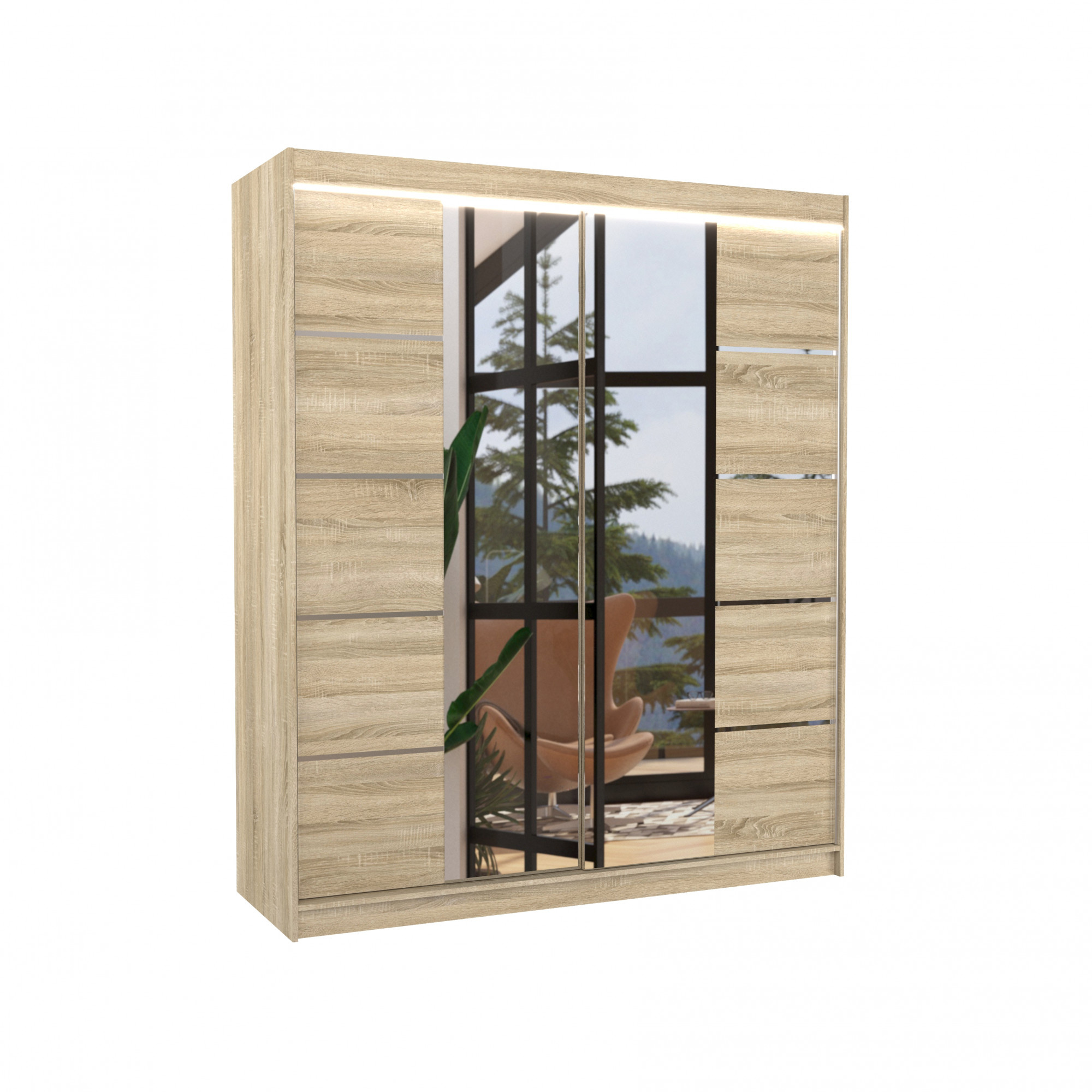 Tolóajtós szekrény tükörrel és LED világítással TRAVES 180 Sonoma+Sonoma