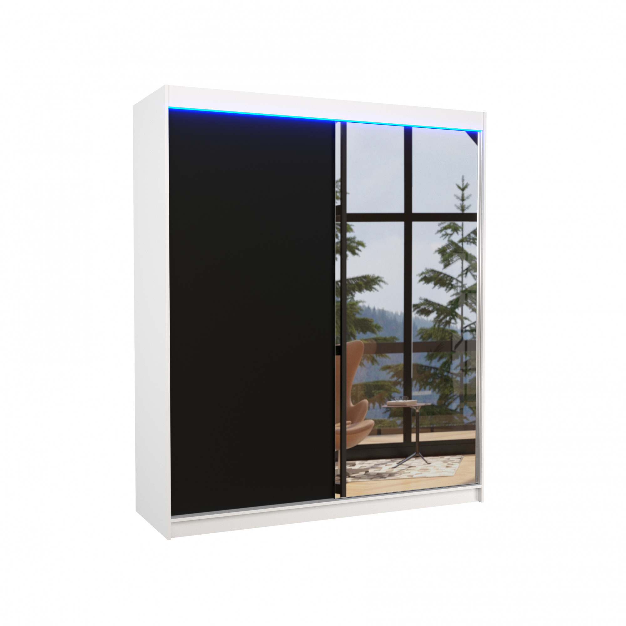 Tolóajtós szekrény tükörrel és LED világítással VIKI 180 Fehér+Fekete