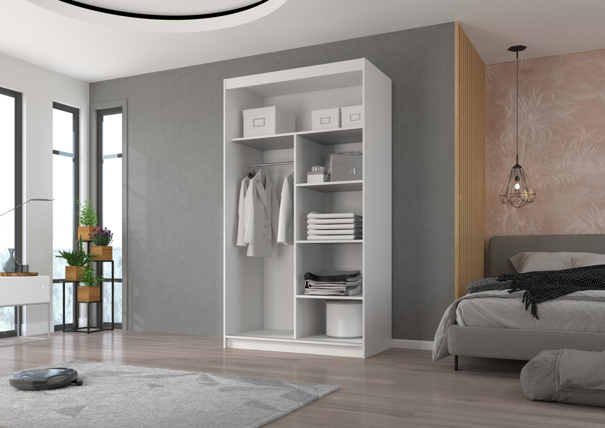 Tolóajtós szekrény tükörrel ESTI 120 Fehér+Fehér