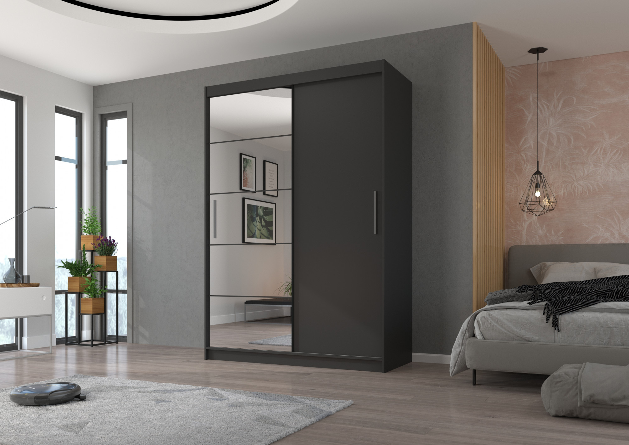 Tolóajtós szekrény tükörrel ESTI 150 Antracit+Antracit