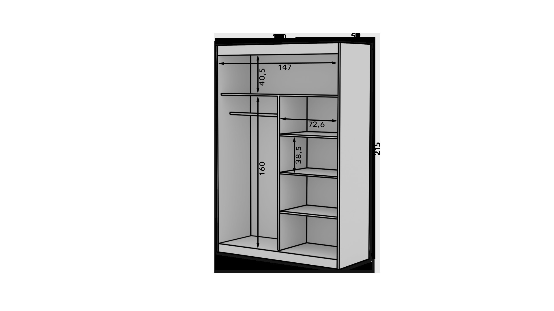 A tolóajtós és tükrös ESTI ruhásszekrény ideális módja a tér rendezésének. A bútor tágas polcokkal és egy rúddal van felszerelve, amelyre felakaszthatja a ruhákat, öltönyöket, felsőruházatot vagy ingeket. Az elülső oldalra tükröket rögzítettek, amelyek optikailag megnövelik a teret és varázslatos bájt kölcsönöznek neki. Annak köszönhetően, hogy a szekrény tolóajtós, nem kell további helyet biztosítani az ajtók kinyitásához, ami ideális megoldássá teszi egy kis szoba vagy keskeny előszoba számára.
